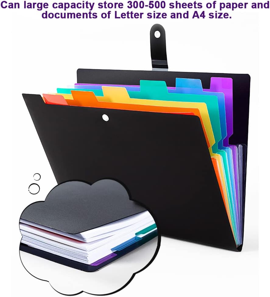 【سعة كبيرة】: يبلغ حجم مجلد الملفات الموسع هذا حوالي 12.8 × 9 بوصة (32.5 × 24 سم)، حجم ظرف الحروف القياسي. مجلد ملفات ممتد مصمم بـ 7 جيوب قابلة للتوسيع و6 مواضع لعلامات التبويب. يمكن تخزين سعة كبيرة من 300 إلى 500 ورقة ومستندات بحجم Letter وحجم A4، إنه حقًا مساعد جيد في حياتك المكتبية، لذلك لم تعد بحاجة إلى تقلق بشأن الملفات المختلطة معًا.