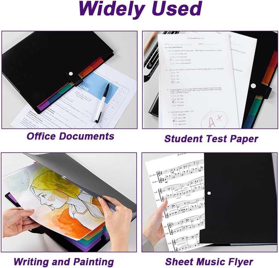 【يستخدم على نطاق واسع】: مثالي للتعليم والعمل المدرسي والتدريس والواجبات المنزلية والعمل اليومي المكتبي والمشروعات والملفات والتخزين. عندما يكون هناك عدد كبير من المستندات التي تحتاج إلى فصلها، يمكن استخدام هذا المجلد. يمكنهم مساعدتك في تصنيف وتنظيم الوظائف أو الترتيبات المختلفة. مثالية كهدية شخصية، وتذكار، ومنظم زفاف وما إلى ذلك.
