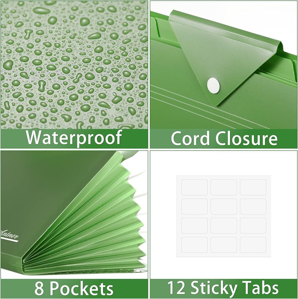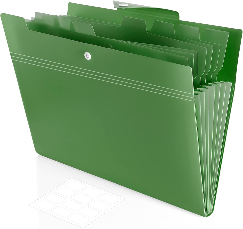 البقاء على رأس الأوراق الخاصة بك. يتميز بـ 8 جيوب و12 ملصقًا لاصقًا، مما يسمح لك بتنظيم مستنداتك بسهولة حسب الموضوع. حافظ على أمان جميع ملفاتك المهمة وقم بتصنيفها والعثور عليها بكفاءة من خلال نظام التنظيم المريح الخاص بنا