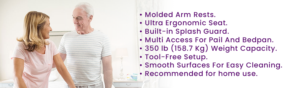 تصميم كومود 3 في 1: يسمح باستخدام الراحة بالإضافة إلى كومود ككومود بجانب السرير، أو إطار أمان للمرحاض، أو مقعد مرحاض مرتفع. يبلغ وزن إطار الصوان الفولاذي 350 رطلاً.