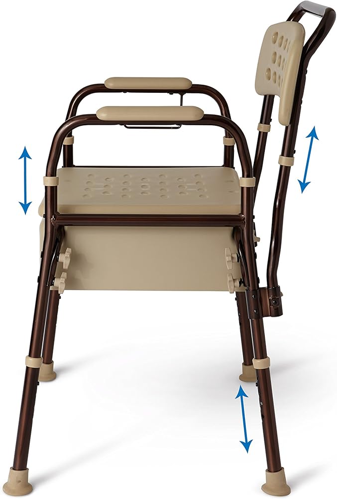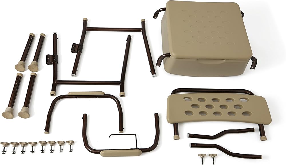 مقعد ومسند ذراع قابلين لتعديل الارتفاع يساعد على الارتداء والخلع؛ يمكن تعديل المقعد بزيادات 0.5 انش لملاءمة مثالية؛ لمسة نهائية برونزية داكنة ونمط يناسب معظم الديكورات