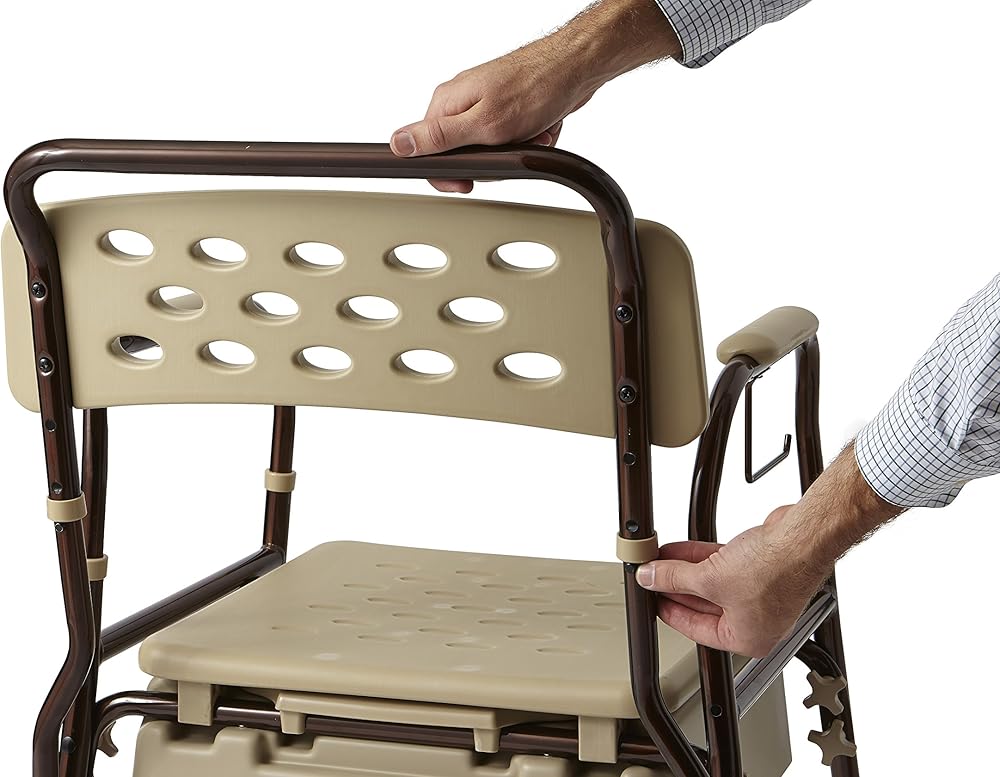 الآن هناك بديل للمظهر الأبيض والمؤسسي لوسائل الاستحمام التقليدية. تتميز خزانة السرير الفاخرة من ميدلاين بلمسة نهائية برونزية داكنة ومقاعد انسيابية وألوان صامتة تساعد على جعل المنزل يبدو وكأنه منزل وليس مستشفى. تصميم مبتكر يجعل من السهل تعديل قاعدة السرير من اليمنتس لتوفير الراحة المخصصة والمزيد من الأمان. اضبط ارتفاعات المقعد ومساند الذراعين والظهر باستخدام أزرار ضغط بسيطة ومقابض لتناسب احتياجاتك. هذا السرير بجانب السرير غني بتقنية مايكروبان. تمنع تقنية ميكروبان نمو البقع والروائح الناتجة عن البكتيريا والعفن والعفن الفطري وتحافظ على نظافة منتجات الحمام الخاصة بك لفترة أطول. الحماية من الميكروبان مدمجة أثناء عملية التصنيع ولن تغسل بين عمليات التنظيف الروتينية أو التآكل - مما يوفر حماية مستمرة من الميكروبان طوال عمر المنتج. يحتوي هذا المنتج على خصائص ميكروبان مدمجة لحماية المنتج. لا يحمي هذا المنتج المستخدمين أو الآخرين من البكتيريا أو الفيروسات أو الجراثيم أو الكائنات الحية الأخرى المرضية.