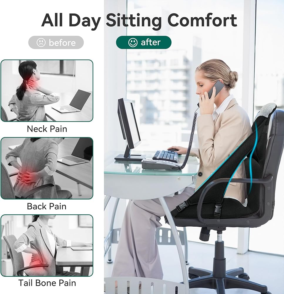 إسفنج ميموري عالي الجودة لراحة دائمة: مصنوعة من إسفنج ميموري ممتاز، وسادة دعم أسفل الظهر Snailax تضمن راحة دائمة. لا تعمل هذه الرغوة عالية الجودة على تحسين وضعية الجسم فحسب، بل تخفف أيضًا من إزعاج الساق الناتج عن الجلوس لفترات طويلة. تضمن كثافته طويلة الأمد راحة لا مثيل لها مع مرور الوقت.