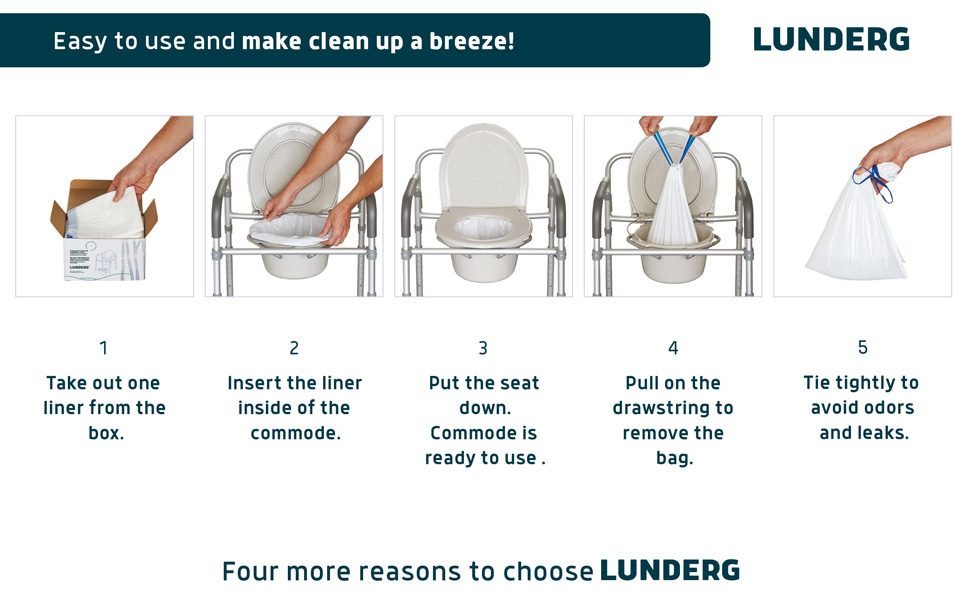 . تأتي بطانات Lunderg القيمة في صندوق قوي ومتين يحتوي على 100 حقيبة منفصلة بالفعل، وتجعل الحياة أسهل بكثير لمقدمي الرعاية ورعاية الأسرة والرعاية الذاتية. ليس عليك إضاعة وقتك وطاقتك في تمزيق الحواف المثقبة لللفائف بعد الآن!