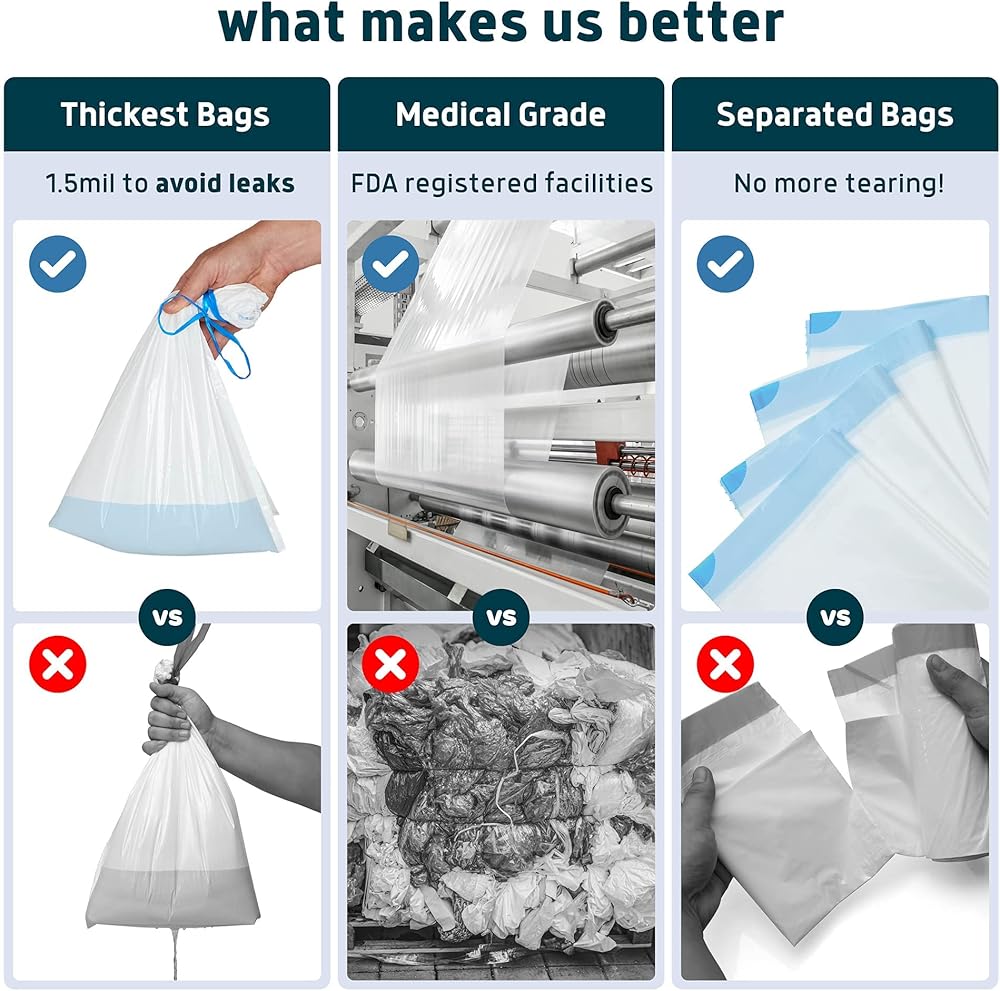 𝗘𝗔𝗦𝗬 𝗧𝗢 𝗨𝗦𝗘 𝗔𝗡𝗗 𝗘𝗔𝗦𝗬 𝗧𝗢 𝗗𝗜𝗦𝗣𝗢𝗦𝗘 - ما عليك سوى إزالة كيس المرحاض المحمول عن طريق سحب الخيوط وربطه فتح الحقيبة للقضاء على الروائح والتخلص منها. إنهم فقط يجعلون التنظيف سهلاً!