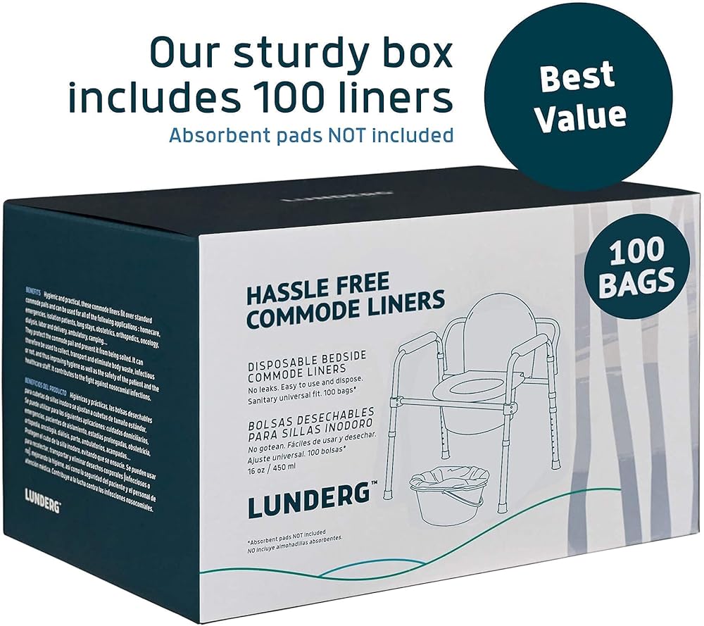بطانات كومود من لوندج - عبوة اقتصادية مكونة من 100 قطعة تناسب الجميع - بطانات كومود من الدرجة الطبية يمكن التخلص منها لكرسي كومود للبالغين، أو أكياس مراحيض محمولة أو أكياس مراحيض للتخييم