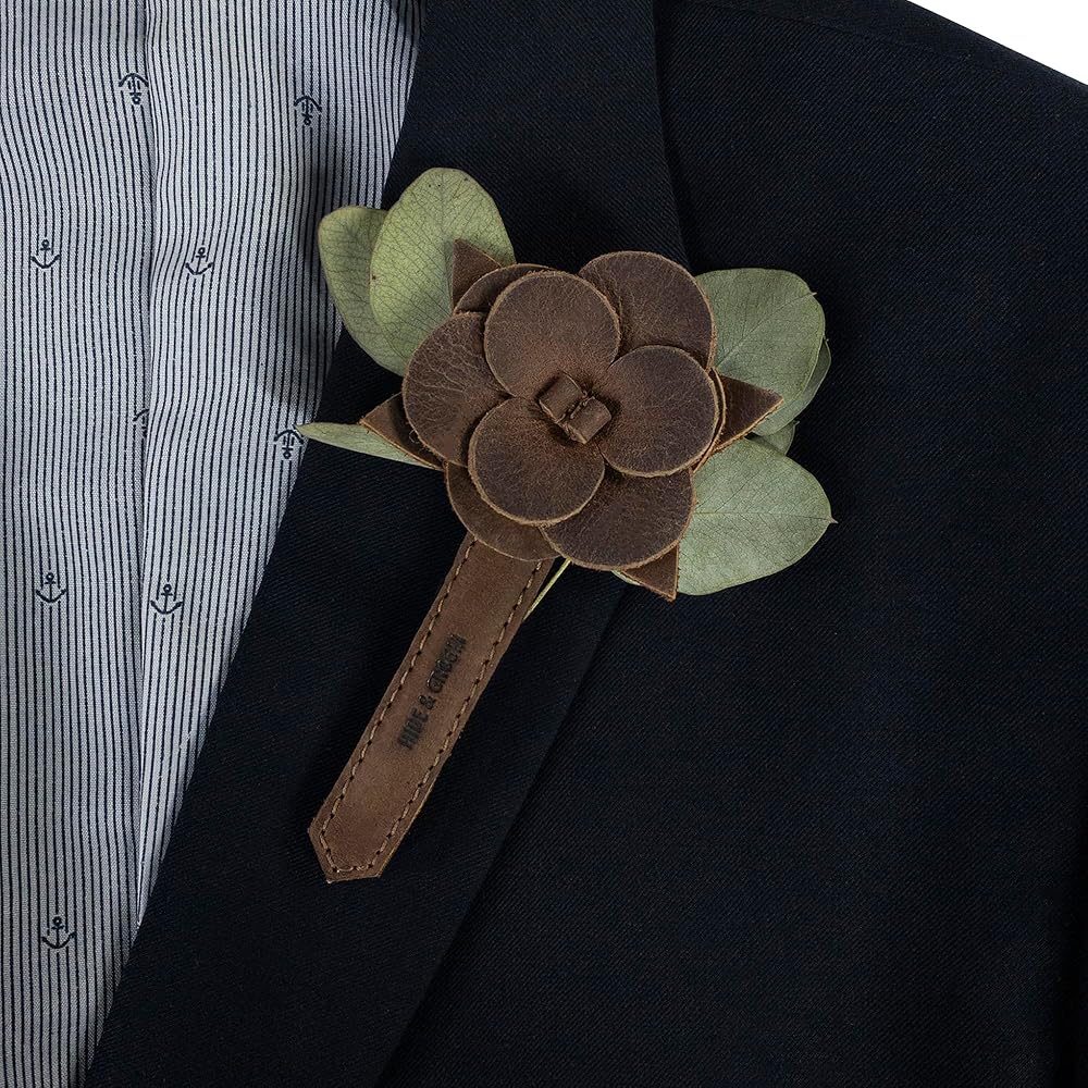 وصف المنتج: هذه العروة الجلدية الأنيقة والمتطورة على شكل زهرة مثالية لأي حفل زفاف، أو حفل عشاء، أو أي مناسبة رسمية أخرى. ويتميز بتصميم جميل في المنتصف، وتحيط به أوراق الشجر الرقيقة. إنها هدية رائعة لرفقاء العريس أو أفضل الرجال أو العزاب أو أي شخص يريد إضافة لمسة من الأناقة إلى ملابسه.