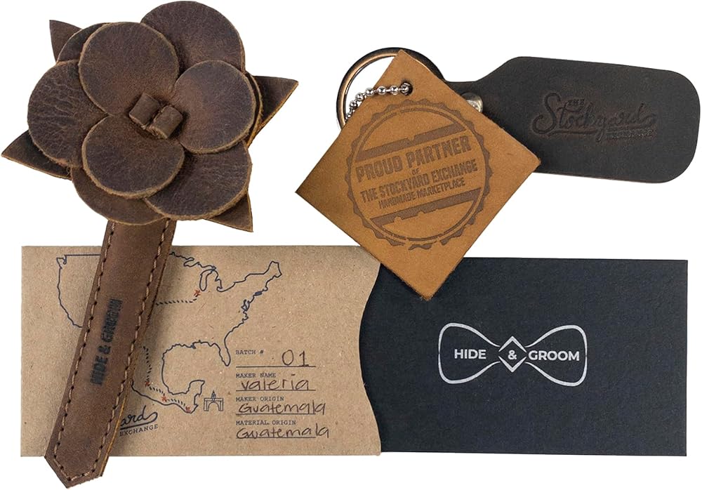 موقع الشركة المصنعة: أنتيغوا، غواتيمالا - هنا في Hide & Groom، كل منتج من منتجاتنا مصنوع يدويًا على يد حرفيين محليين في أنتيغوا، غواتيمالا، وهي مدينة تشتهر بمهارة صناعة السلع الحرفية. نحن نقطع منتجاتنا ونخيطها يدويًا بدقة باستخدام طريقة مجربة وحقيقية، مما يؤدي إلى لمسة نهائية متينة واستخدام مدى الحياة. يتم تمرير أي أطراف سائبة بلهب مفتوح لمنع أي تفكك.