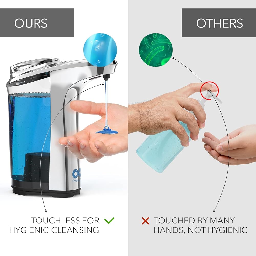 اغسل يديك 1400 مرة في تعبئة واحدة: يحتوي موزع الصابون ذو السعة الكبيرة بدون لمس على ما يكفي من الصابون السائل ليدومك خلال 1400 غسلة يد أو أكثر قبل الحاجة إلى إعادة تعبئته.