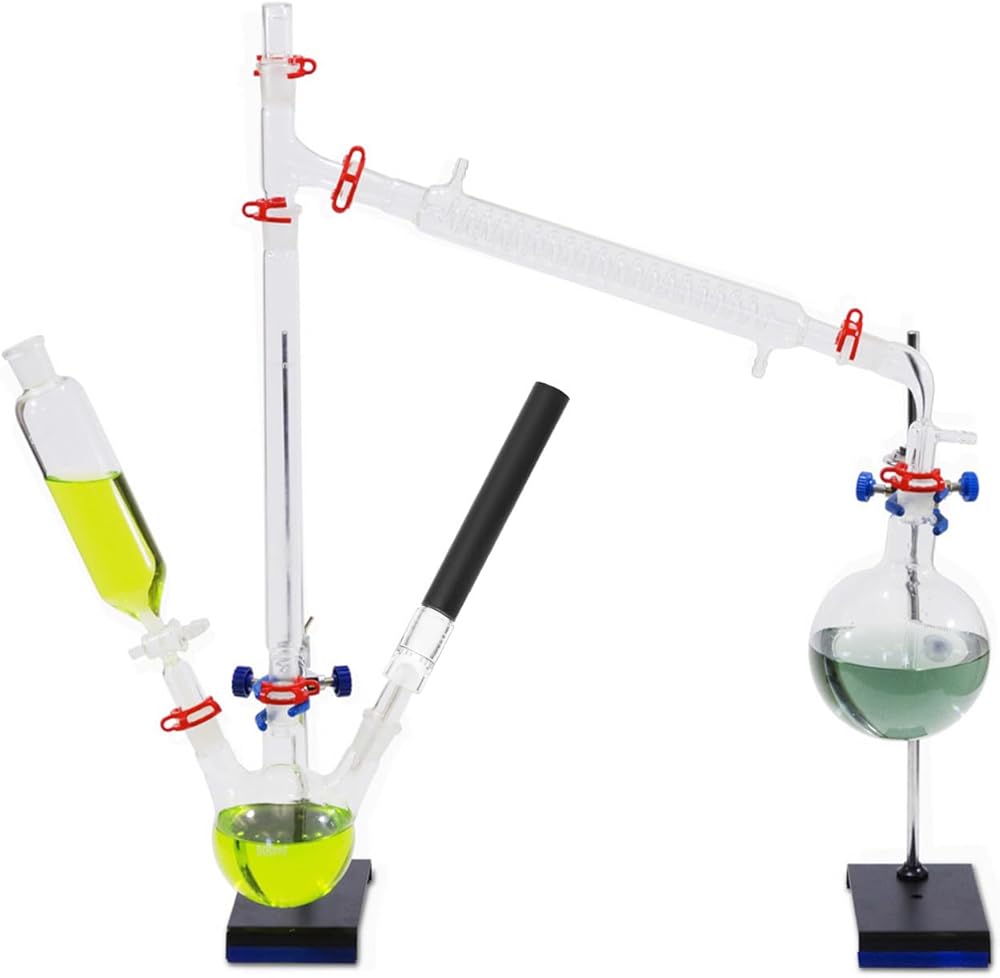 العزل الحراري المعزز: يضمن العزل الحراري الأسود الموجود على سيقان الأنبوب الزجاجي تحسين التحكم الحراري أثناء التقطير والعمليات الأخرى، مما يعزز كفاءة ودقة التفاعلات الحساسة لدرجة الحرارة.