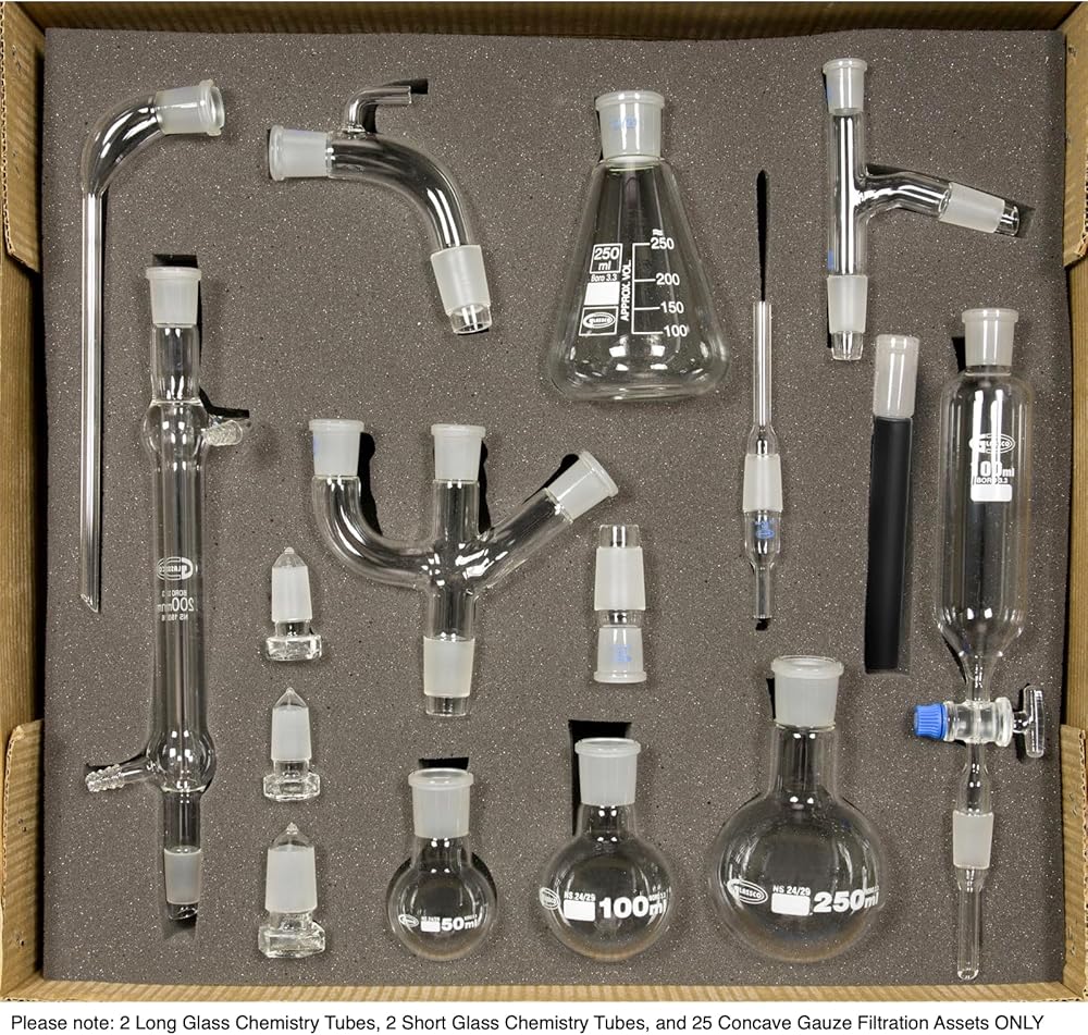 مجموعة شاملة مع الشاش الكيميائي: بالإضافة إلى السيقان الزجاجية، تتضمن الحزمة 25 قطعة شاش كيميائية، مما يوفر مجموعة شاملة للتجارب المعملية، مفيدة بشكل خاص للترشيح ودعم العمليات الكيميائية.