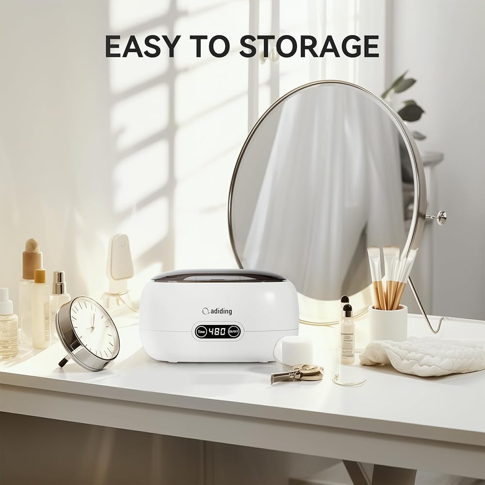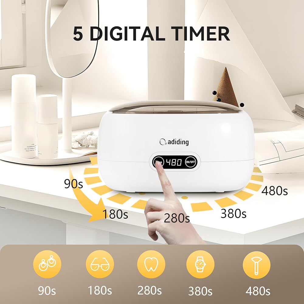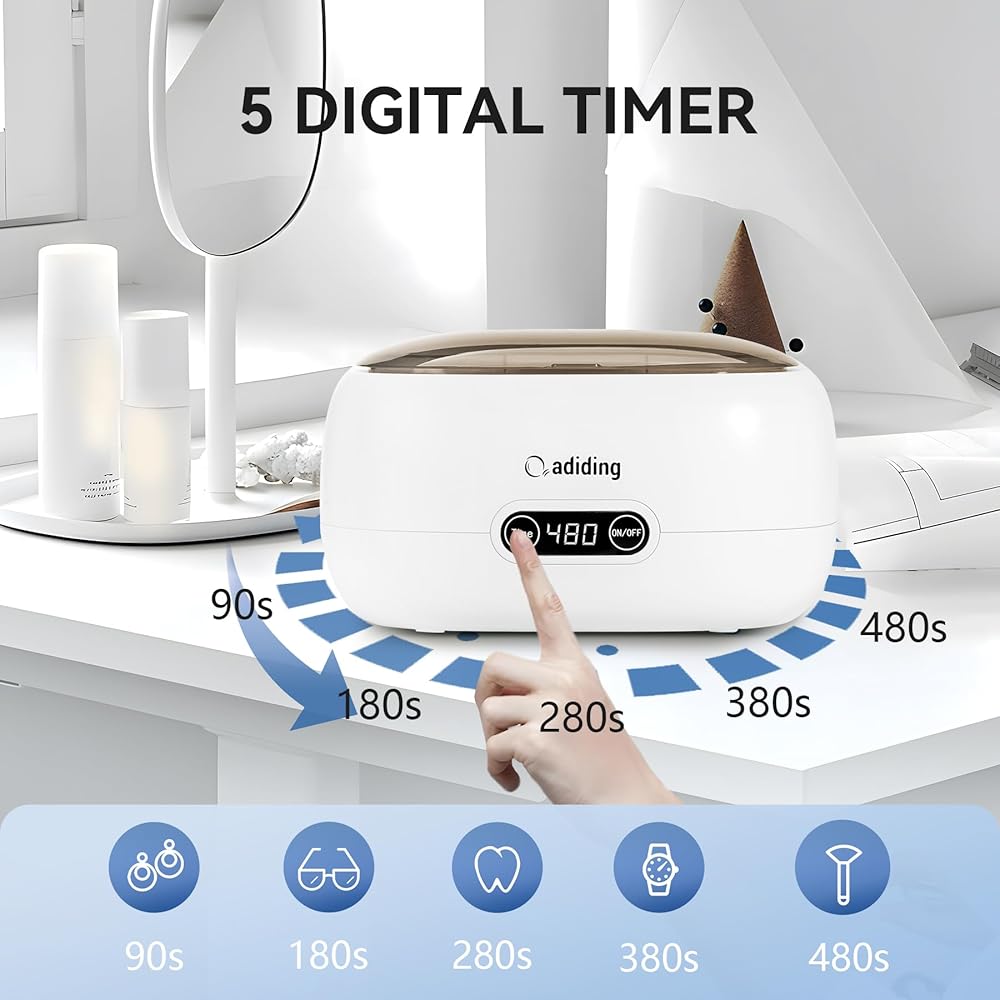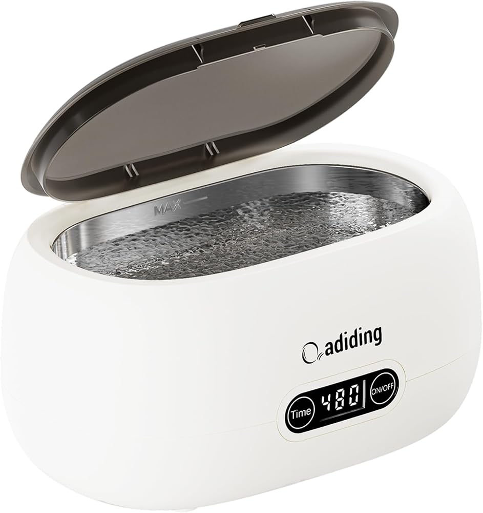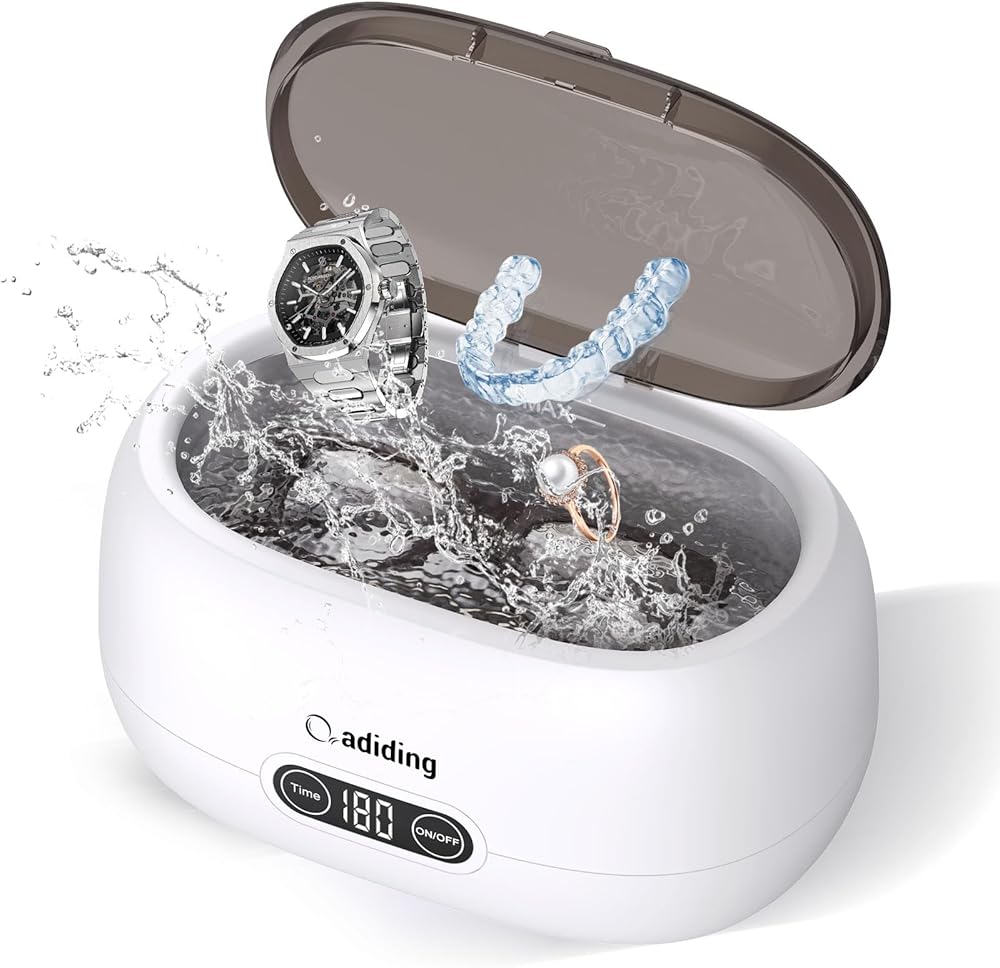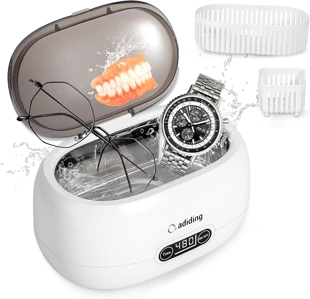 منظف المجوهرات بالموجات فوق الصوتية من Adiding، منظف النظارات الحلقية الصوتية 650 مل، آلة تنظيف أطقم الأسنان الاحترافية مع 5 مؤقتات رقمية، وضع ديغا 45 كيلو هرتز، آلة تنظيف العملات المعدنية المحمولة، ساعة الأقراط والقلائد