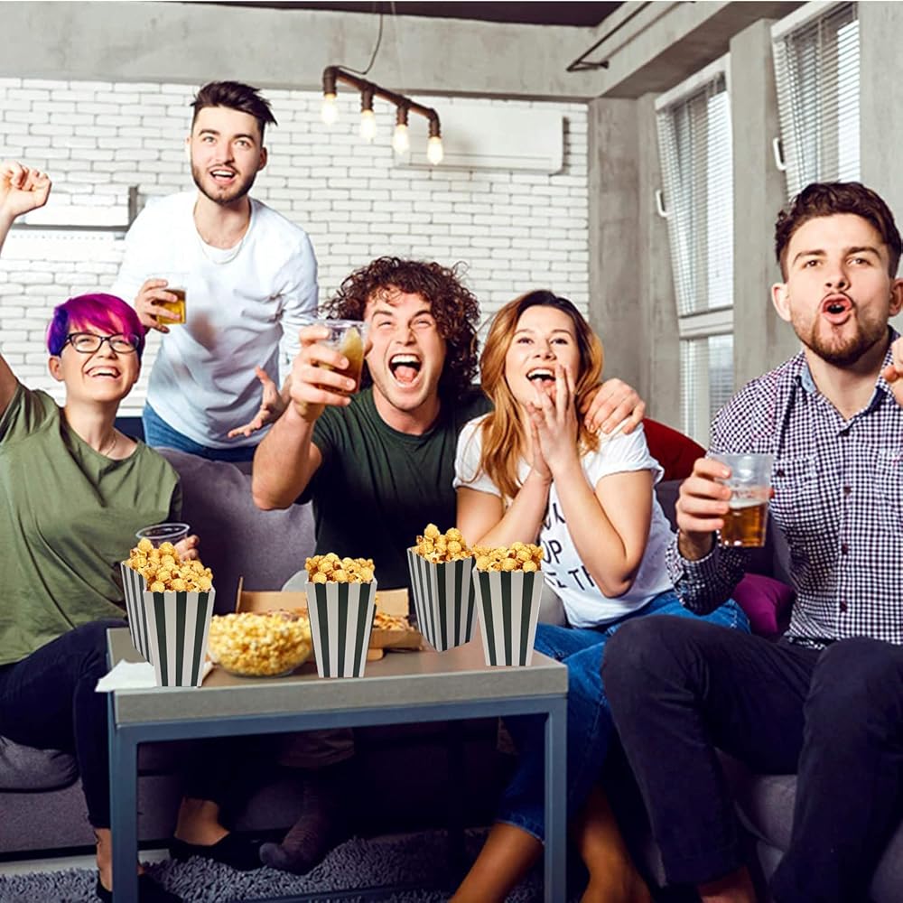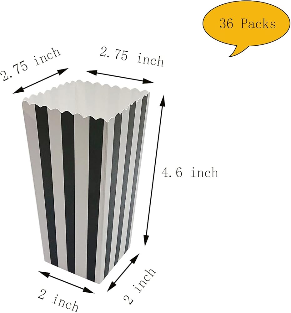 36 قطعة من علب الفشار، علبة فشار ورقية صغيرة، حاوية فشار من الورق المقوى للحفلات، خطوط بيضاء وسوداء