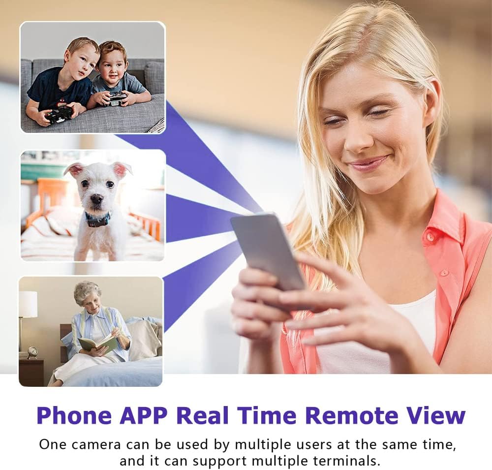 【تقنية محسنة لكشف الحركة 】كاميرا WIFI مع كشف الحركة الذكي المحسن، يمكنك ضبط حساسية المستشعر يدويًا. يجد الأهداف البشرية بسرعة ويرسل لك إشعارًا على الفور. وظيفة التتبع الذكي تجعل الكاميرا تتبع الأجسام المتحركة، وتسجل مقاطع فيديو في الوقت الفعلي وترسل تنبيهات فورية إليك.