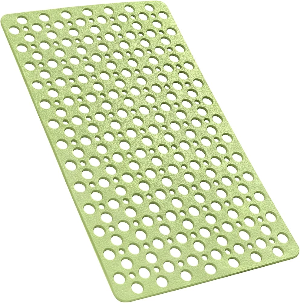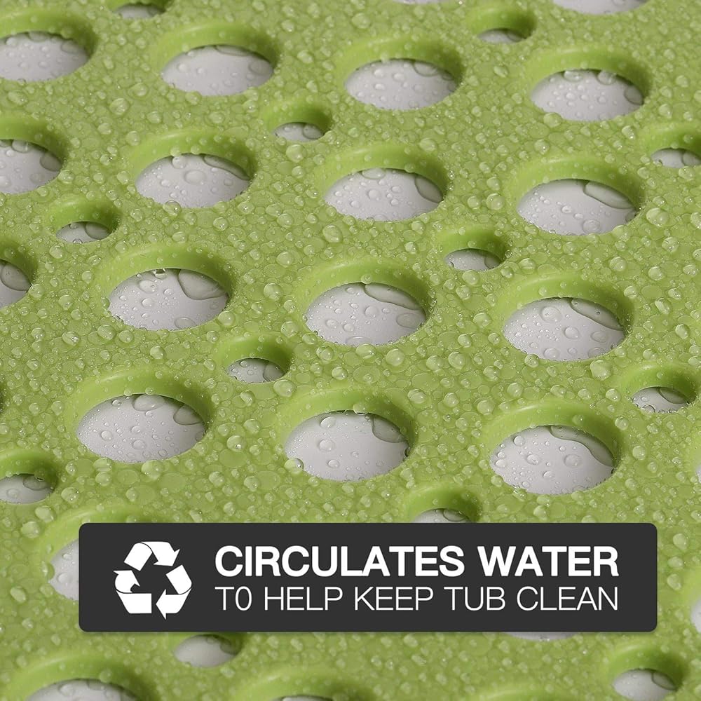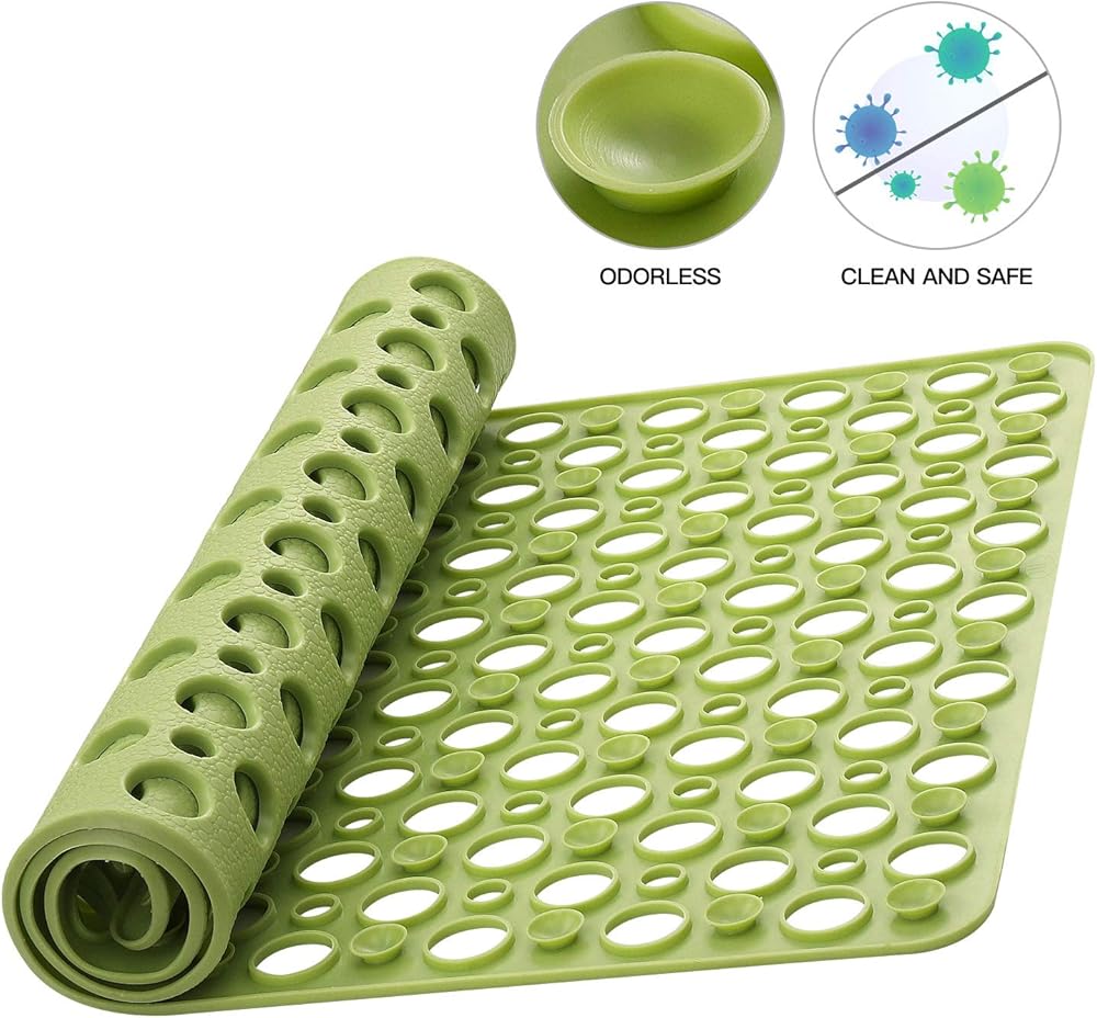 YINENN حمام دش حصيرة غير زلة مع أكواب الشفط، TPE حصيرة سلامة دش وخالية من اللاتكس الفثالات، سجادة حمام قابلة للغسل في الغسالة للحوض، حصائر حمام ناعمة مع فتحات تصريف 30 × 17 بوصة، ذروة خضراء