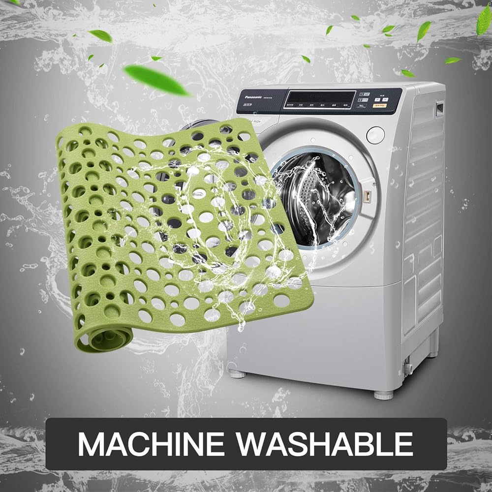 • Large Size and Machine Washable:Our extra large and generously sized mat is 30 x 17 inch and provides excellent coverage.Foldable design, convenient to carry and keep. Easy to keep the mat clean,simply toss the shower mat into the machine and enjoy its fresh appearance, free your hands, save your time.We recommend sticking the mat to the wall with suction cups to keep your bath mat dry after each use, rinsing periodically to remove oily, soaps and hair products.