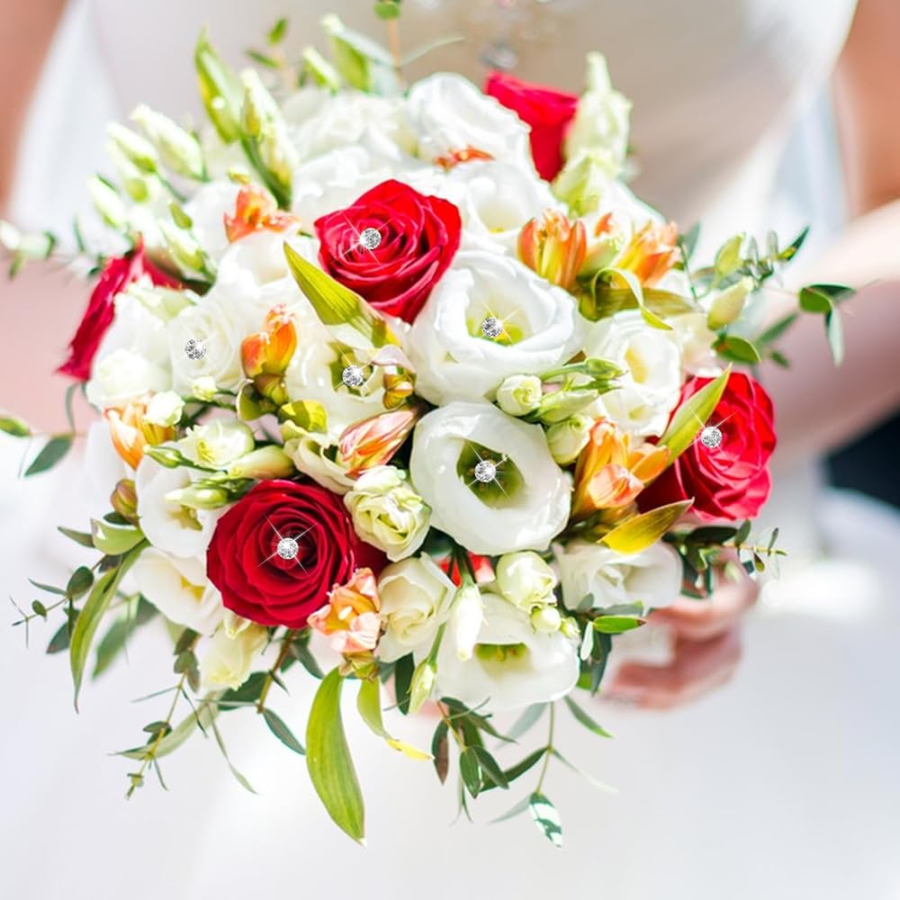 【تصميم جميل】قطع معدنية فولاذية وألماس بلاستيكي، ليس من السهل الانحناء عند تزيين باقات الزفاف، وتبدو مثل قطرات المطر اللامعة تحت أضواء الشموع الناعمة، فهي سطح أملس ومتين وقوي.