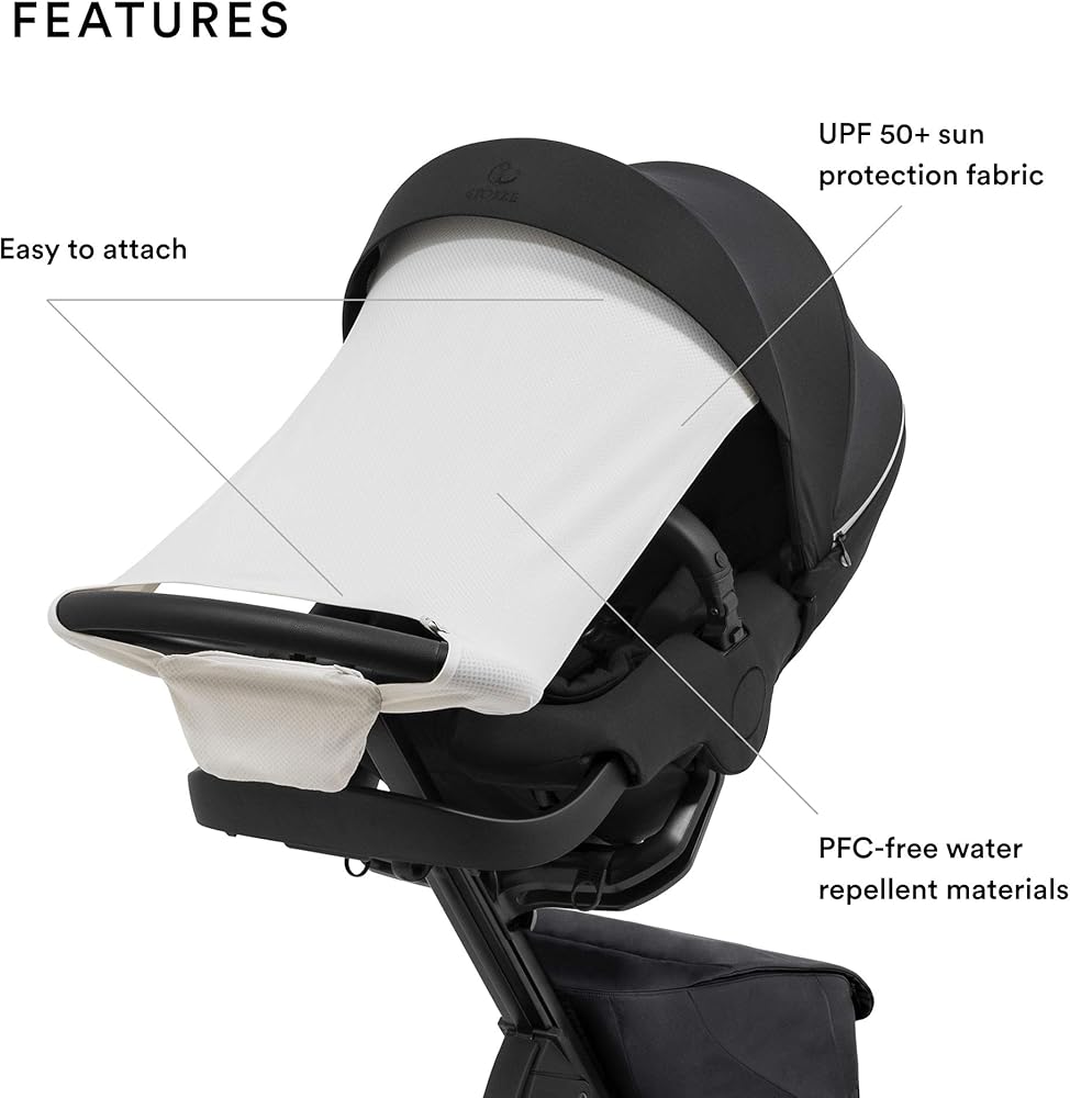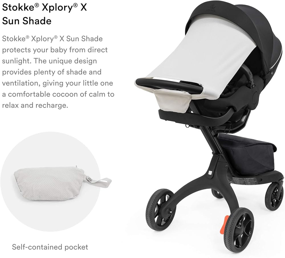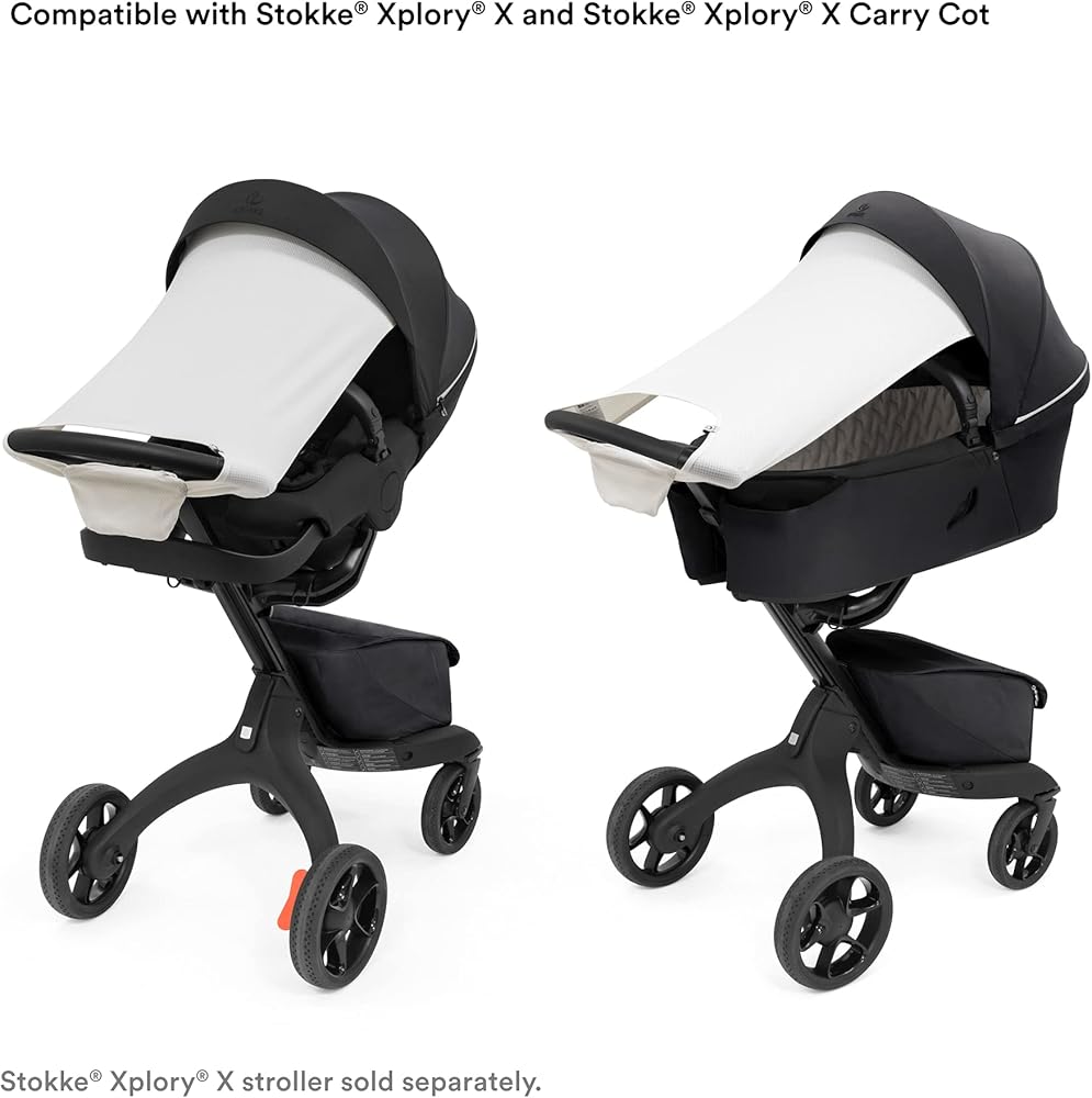 الحماية من أشعة الشمس أثناء التنقل - مصنوعة من أقمشة قابلة للتنفس بعامل حماية من أشعة الشمس 50+، توفر Stokke Xplory X Sun Shade الكثير من الظل والتهوية، مما يمنح طفلك الصغير بيئة مريحة للاسترخاء والنوم.
