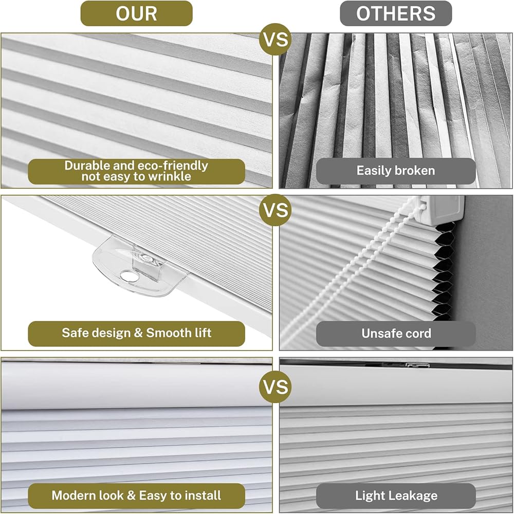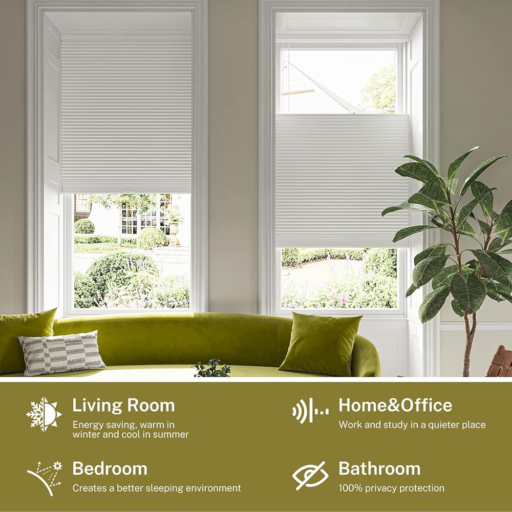 【ظلال تعتيم الغرفة لتوفير الطاقة】إن ستائر النوافذ الخلوية المعتمة التي تحجب الحرارة من الأعلى إلى الأسفل مصنوعة من قماش غير منسوج ورقائق الألومنيوم، مما يوفر عزلًا حراريًا فعالاً والحفاظ على الحرارة وإلغاء الضوضاء. في الصيف، يمكنها حجب الحرارة الخارجية بشكل فعال، وفي الشتاء، يمكنها تخزين التدفئة الداخلية بشكل فعال، مما يوفر تكاليف الطاقة. مثالية للمسارح المنزلية والدراسة والحضانة.