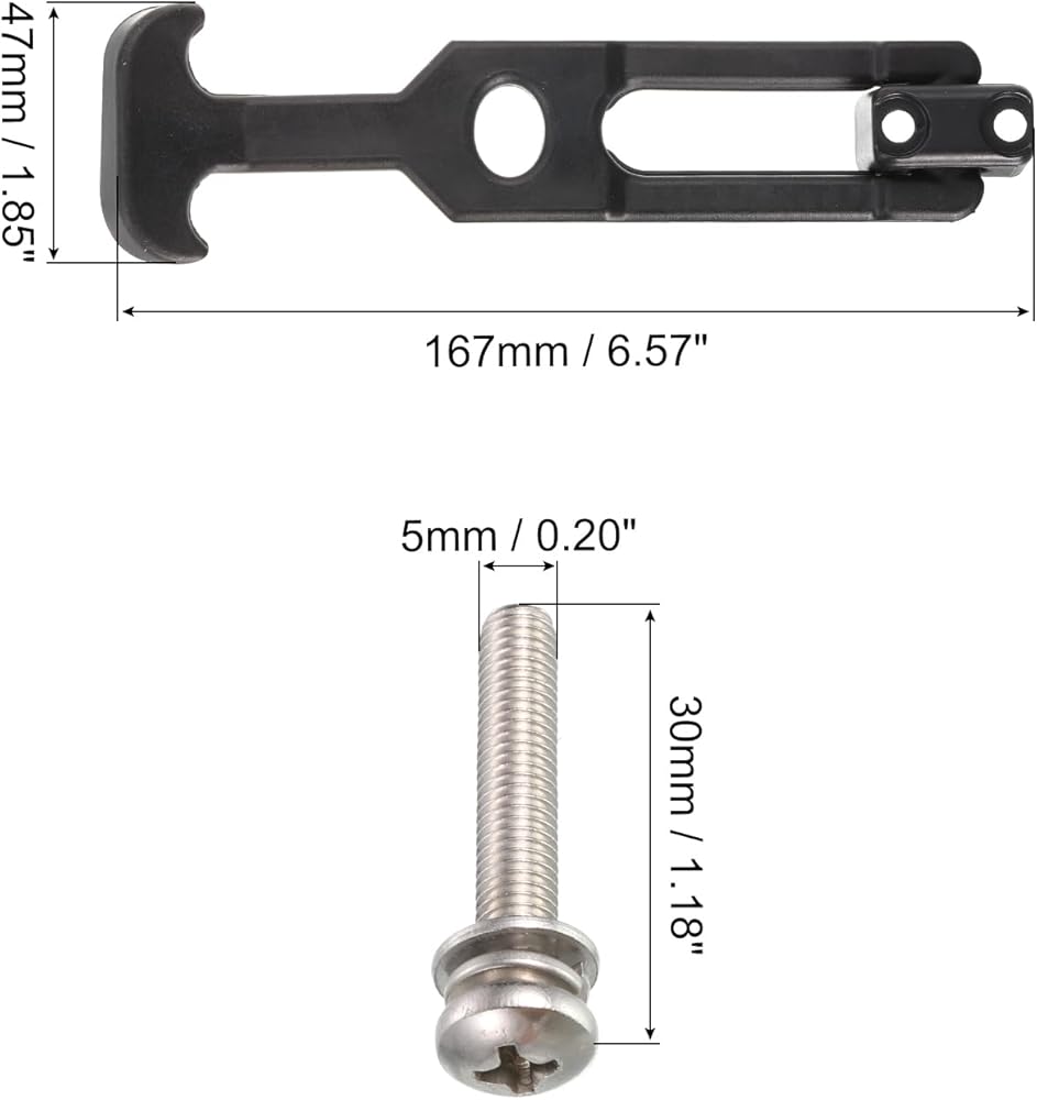 • [مشبك مطاطي على شكل حرف T] - 167 مم × 47 مم/6.57 بوصة × 1.85 بوصة (طول × عرض) بالحجم الإجمالي، 32 مم/1.26 بوصة في عرض الجسم الرئيسي، 80N-145N في تحميل القفل؛ الحمل النهائي: 300N