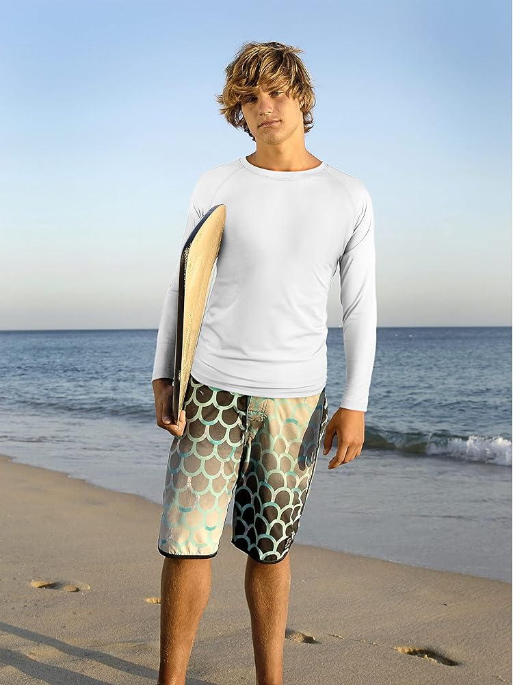 استخدامات واسعة: تعتبر قمصان السباحة الواقية من الشمس هذه للأولاد الصغار عناصر صيفية مثالية عندما تسترخي على الشواطئ أو تلعب الكرة الطائرة الشاطئية أو السباحة أو ركوب الأمواج أو ممارسة الرياضات الخارجية مثل كرة السلة أو كرة القدم؛ بالإضافة إلى ذلك، يمكنك أيضًا ارتدائها أثناء الاسترخاء في المنزل