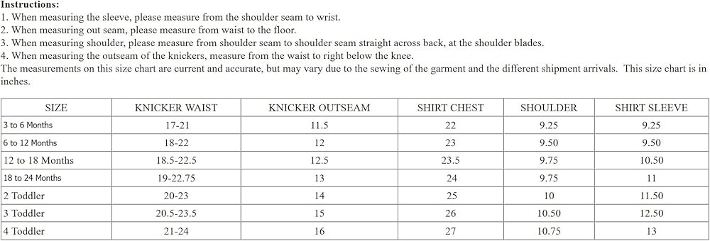 متوفر للأطفال من 3 إلى 6 أشهر، ومن 6 إلى 9 أشهر، ومن 9 إلى 12 شهرًا، ومن 18 إلى 24 شهرًا، و2T، و3T، و4T. ارجع إلى جدول المقاسات الخاص بنا في قسم الصور.