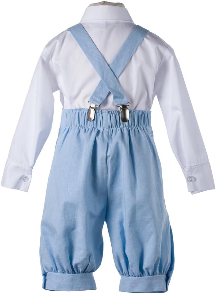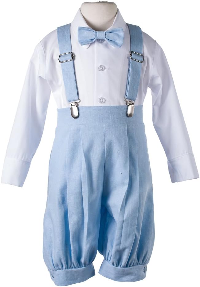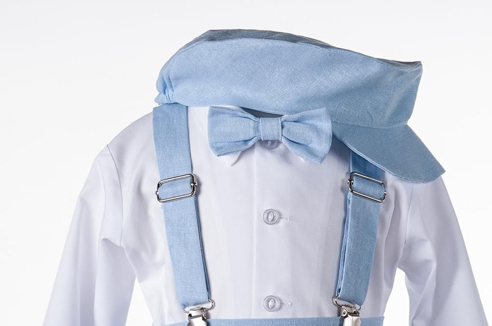 يشتمل الزي على أجزاء سفلية من الكتان، وقبعة إخبارية متطابقة، وربطة عنق وحمالات، وقميص فستان كلاسيكي أبيض.