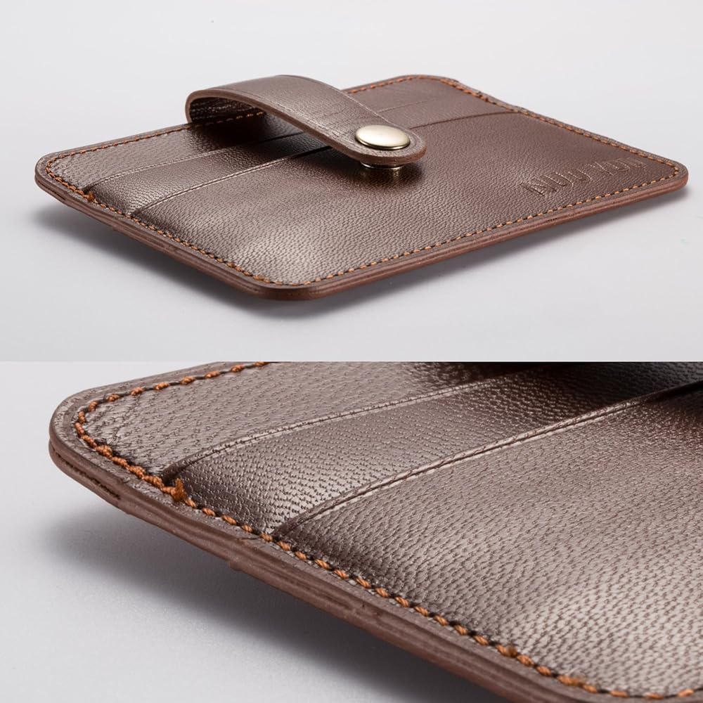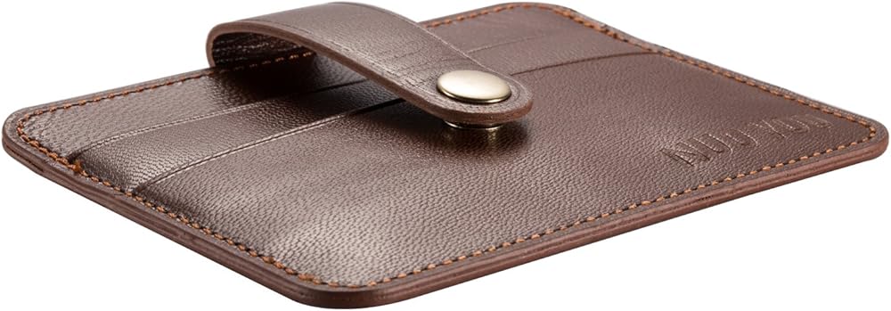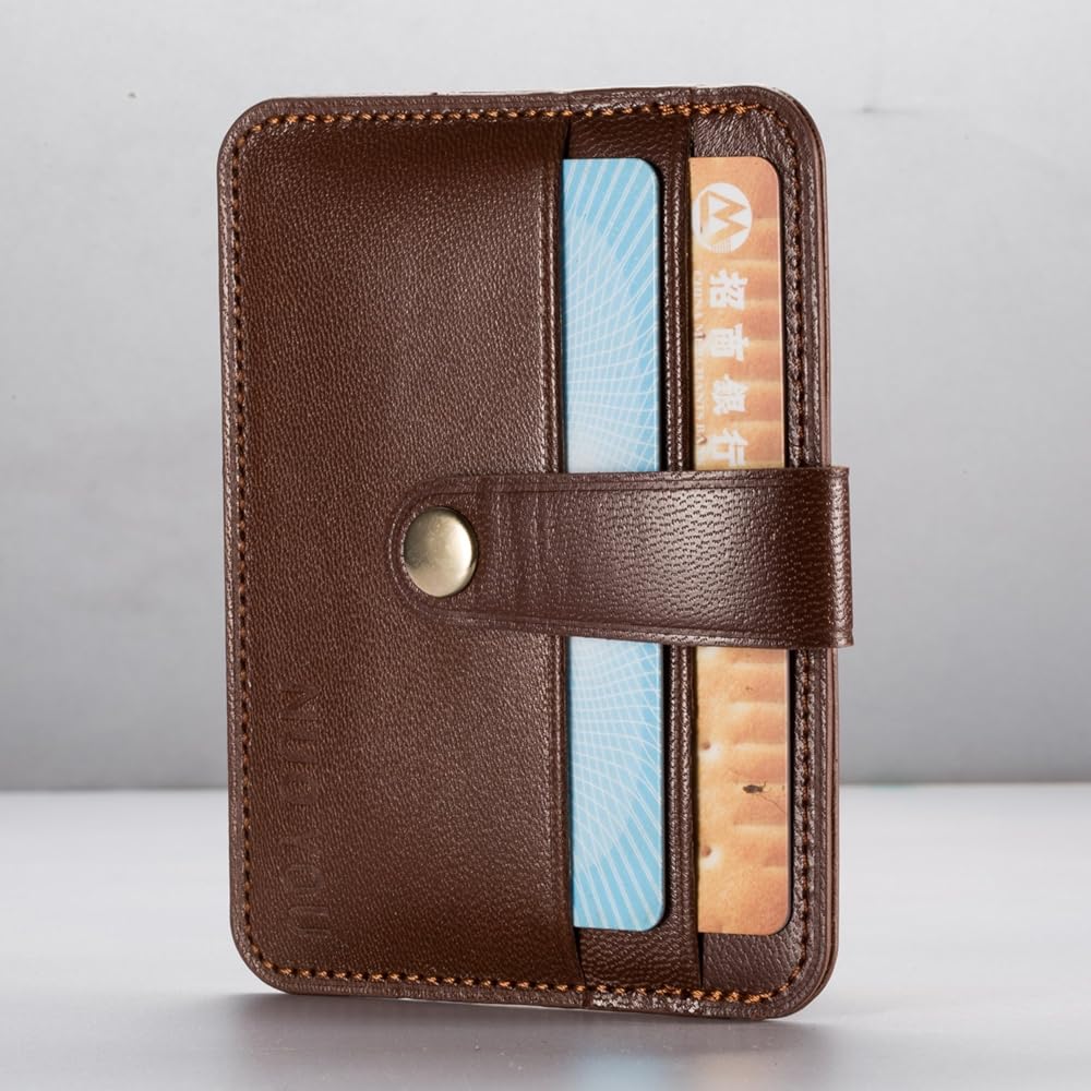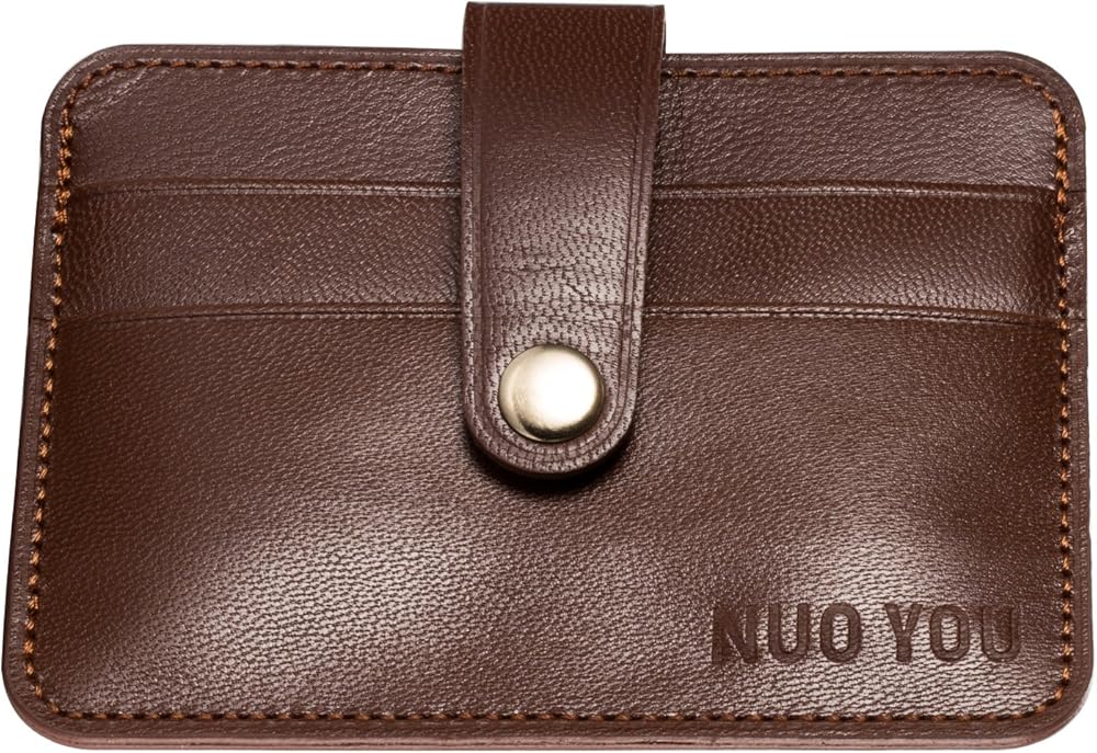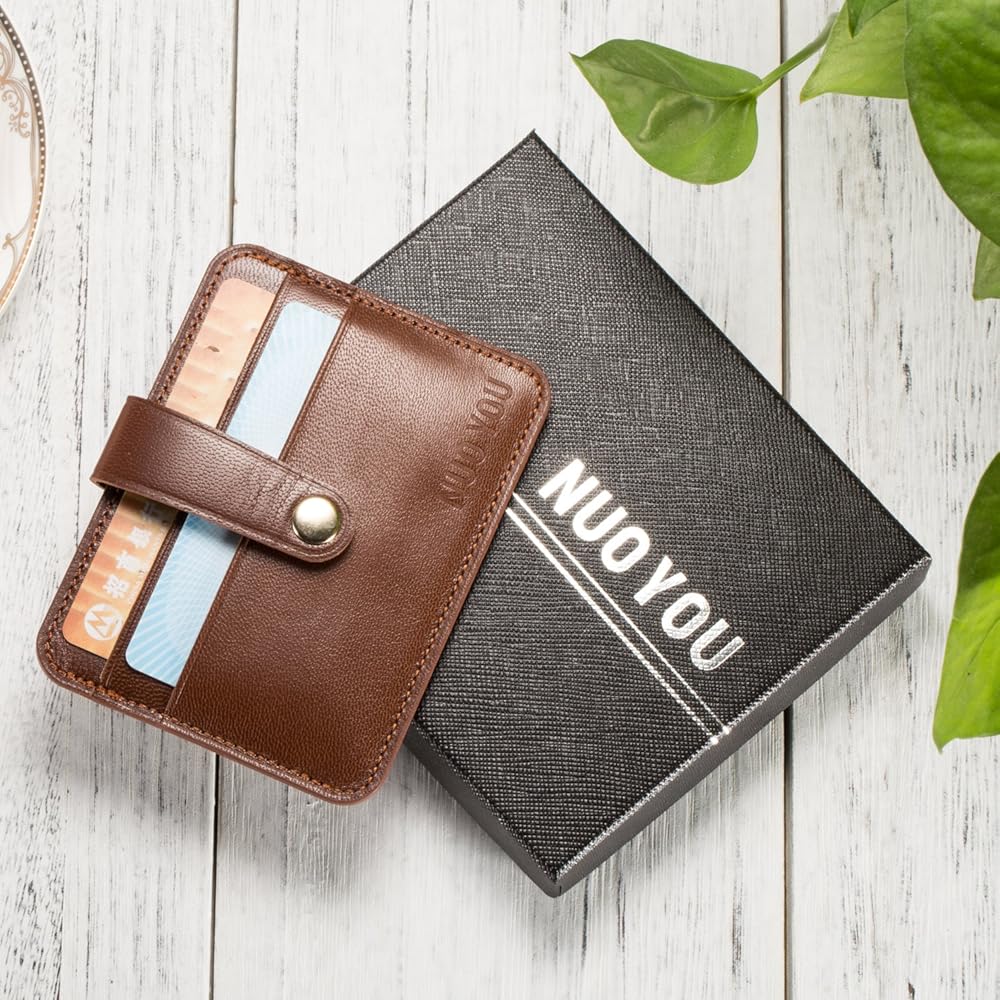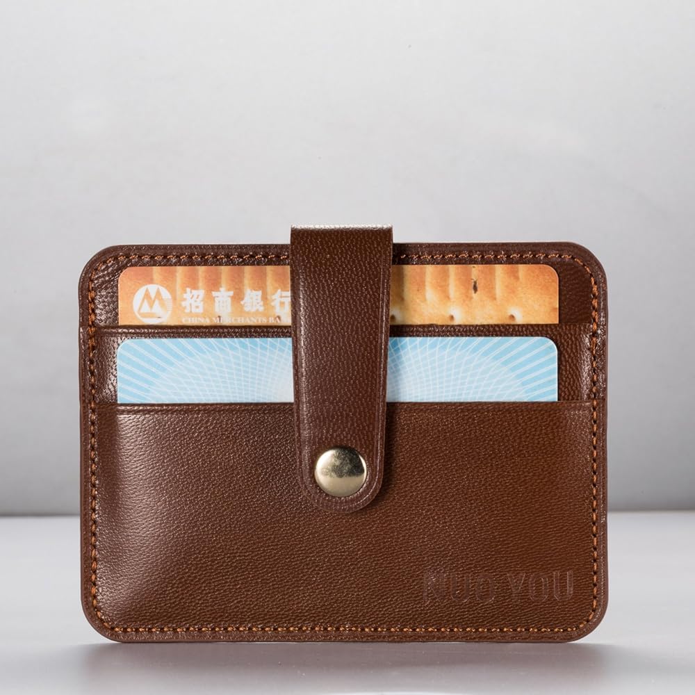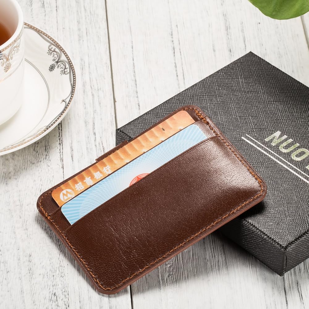 حامل بطاقات جلدية، حافظة بطاقات الهوية من الجلد الطبيعي النحيف من NUOYOU، محافظ صغيرة الحجم وحامل بطاقات الائتمان ومحفظة جيب أمامية (جلد الغنم، أحمر بني)