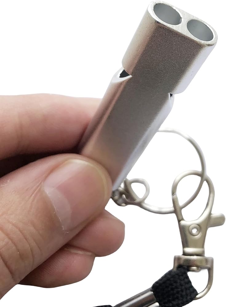 صافرة ثلاثية: يمكن لصافرة الرحلات هذه، مع سلسلة مفاتيح معدنية مزدوجة الأنبوب، أن تنتج صوتًا يزيد عن 100 ديسيبل في الهواء الطلق، وهو مناسب جدًا للاستخدام في حالات الطوارئ.