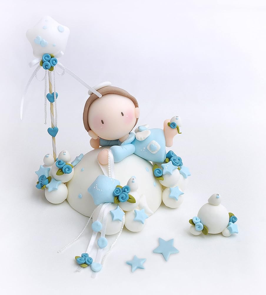 Our cake toppers for babies are made of cold porcelain clay that has natural components like cornstarch and white glue. Thus, although they're non-edible, they don't contain harmful ingredients and are food-safe.