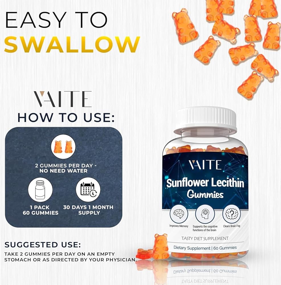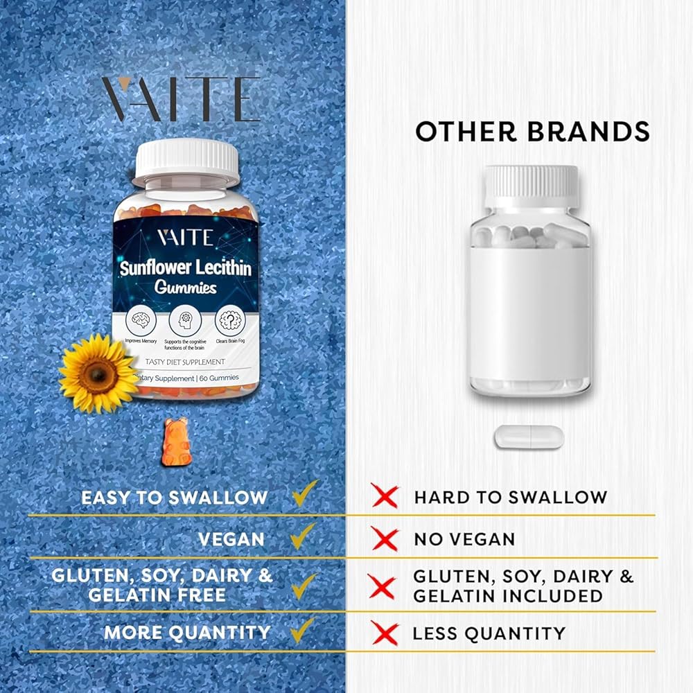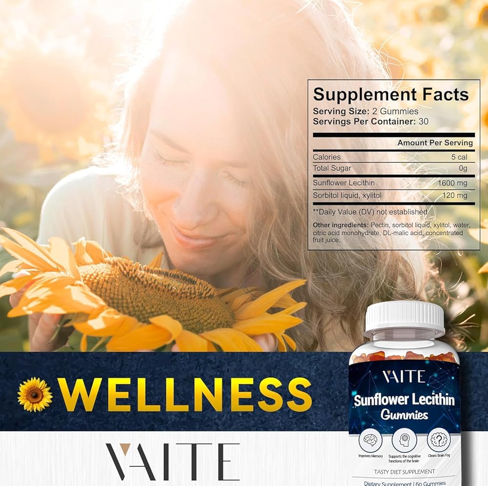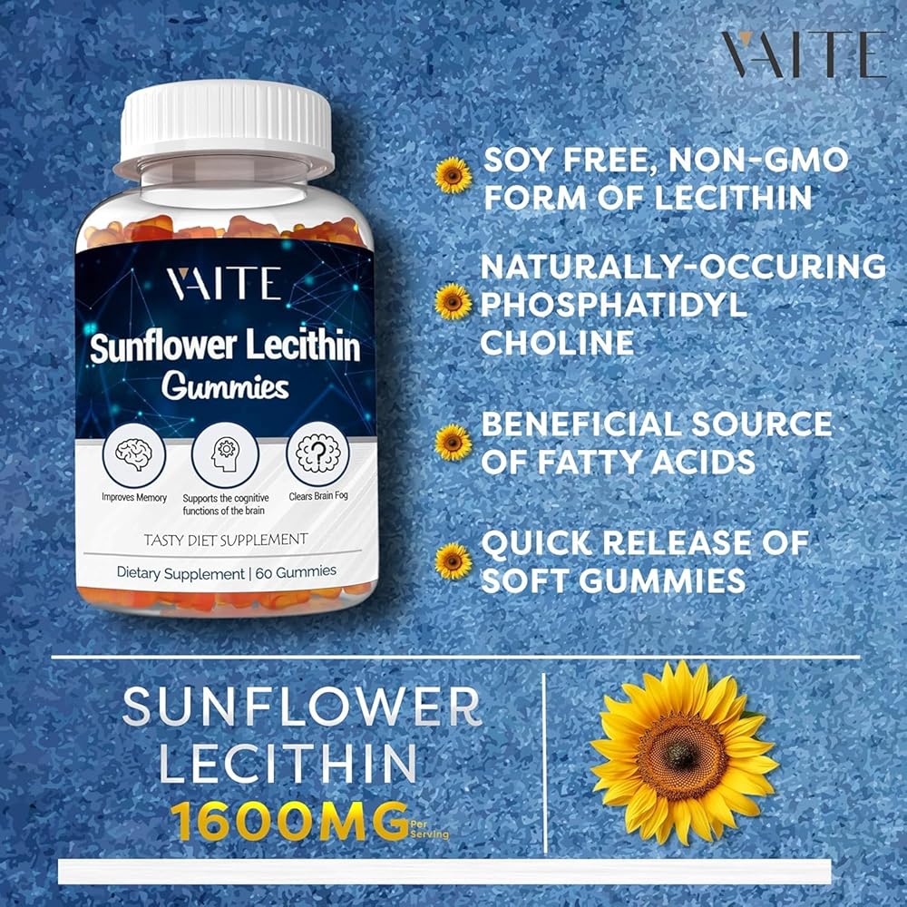 علكة ليسيثين عباد الشمس 800 ملغ - مكملات لقنوات الحليب المسدودة، مكملات الكولين الفوسفاتيديل العضوي، غير معدلة وراثيًا، نباتي، خالي من الصويا، خالي من الغلوتين، تحسين تعزيز الذاكرة - 60 قطعة