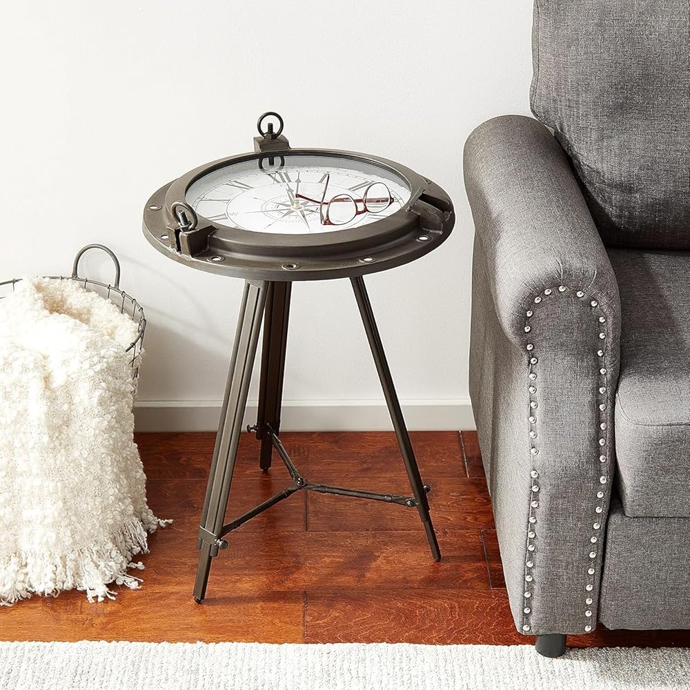 طاولة قهوة وطاولة جانبية بساعة معدنية مستديرة من Urban Designs - بني