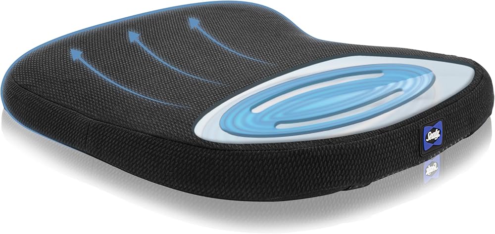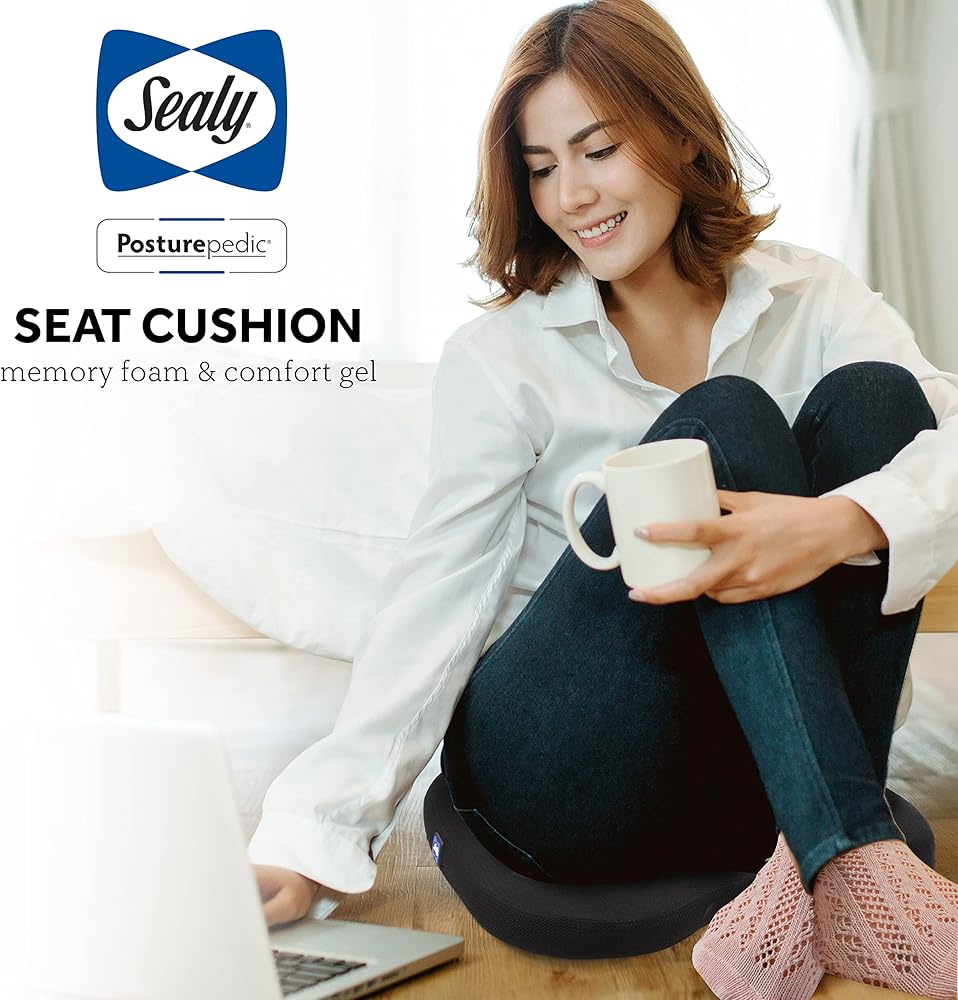 SEALY - وسادة مقعد رفيعة مع جل تبريد - إسفنج ميموري ممتاز لجلوس مريح، دعم محيطي، غطاء مسامي، قاعدة غير قابلة للانزلاق، يمكن غسلها في الغسالة - مثالية للمنزل أو المكتب أو السيارة