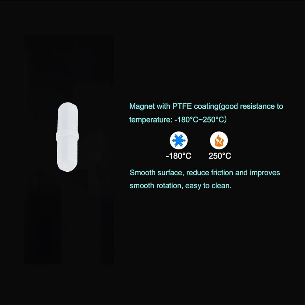 شريط التحريك المغناطيسي مصنوع من المغناطيس مع طلاء PTFE، والطلاء مقاوم للتآكل وله مقاومة جيدة لدرجات الحرارة المرتفعة (نطاق تحمل درجة الحرارة: -180 درجة مئوية ~ 250 درجة مئوية)