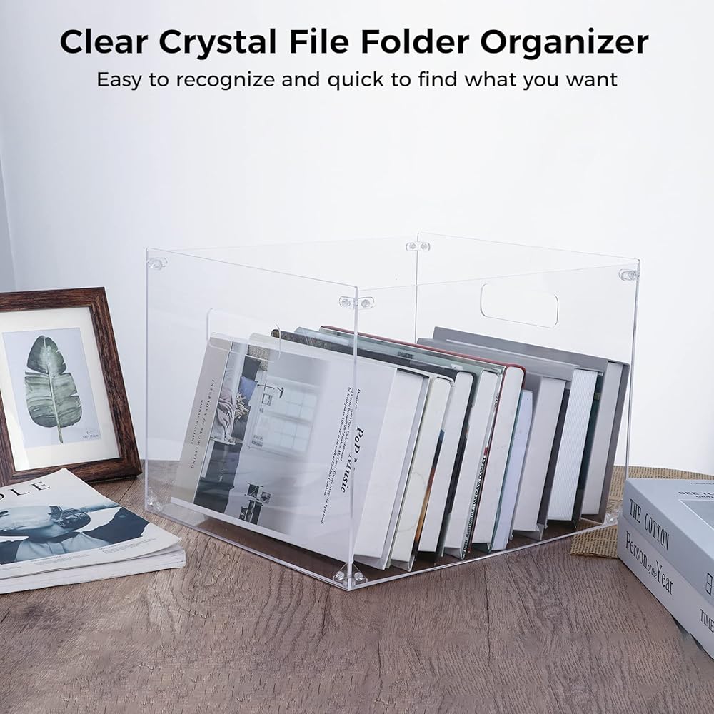 【مادة أكريليك فاخرة】 مصنوعة من مادة أكريليك فاخرة مختارة، صندوق تخزين الملفات الخاص بنا قوي ومقاوم للصدمات، ويتغلب على تلك الحافظات المصنوعة من الورق المقوى التي تتشوه بسهولة. علاوة على ذلك، فإن الأكريليك الشفاف يجعل الصندوق بسيطًا وأنيقًا للعمل في ديكور المنزل بينما يسهل عليك العثور على الملفات المستهدفة من خلال الألواح الشفافة.