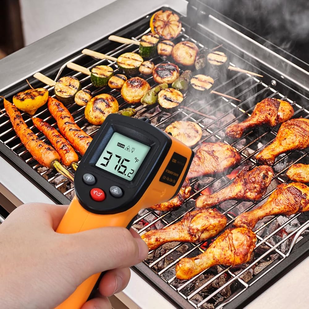 مقياس حرارة بيتوس بالأشعة تحت الحمراء، نطاق مسدس درجة الحرارة غير المتصل -58 درجة فهرنهايت ~ 1022 درجة فهرنهايت، -50 درجة مئوية ~ 550 درجة مئوية، مقبض ليزر رقمي للمطبخ والفرن وقياس سطح الشواء، وليس للبشر