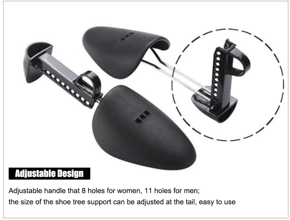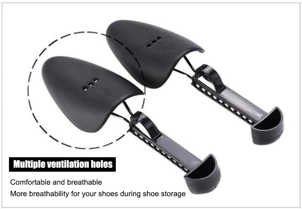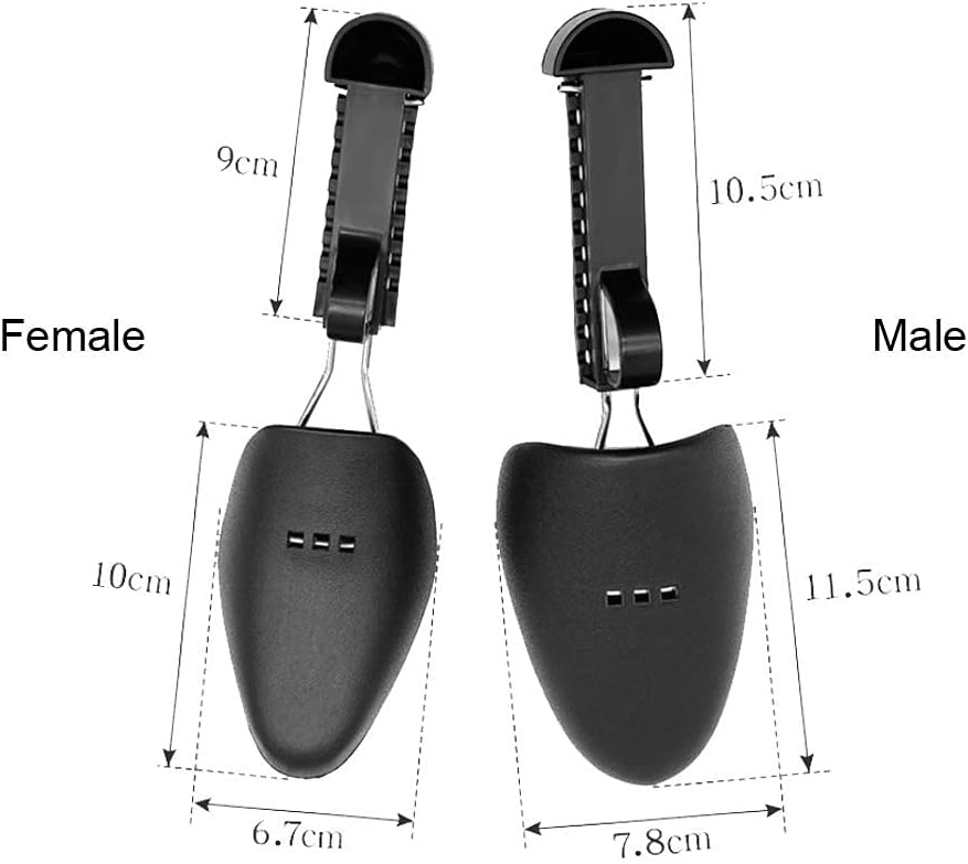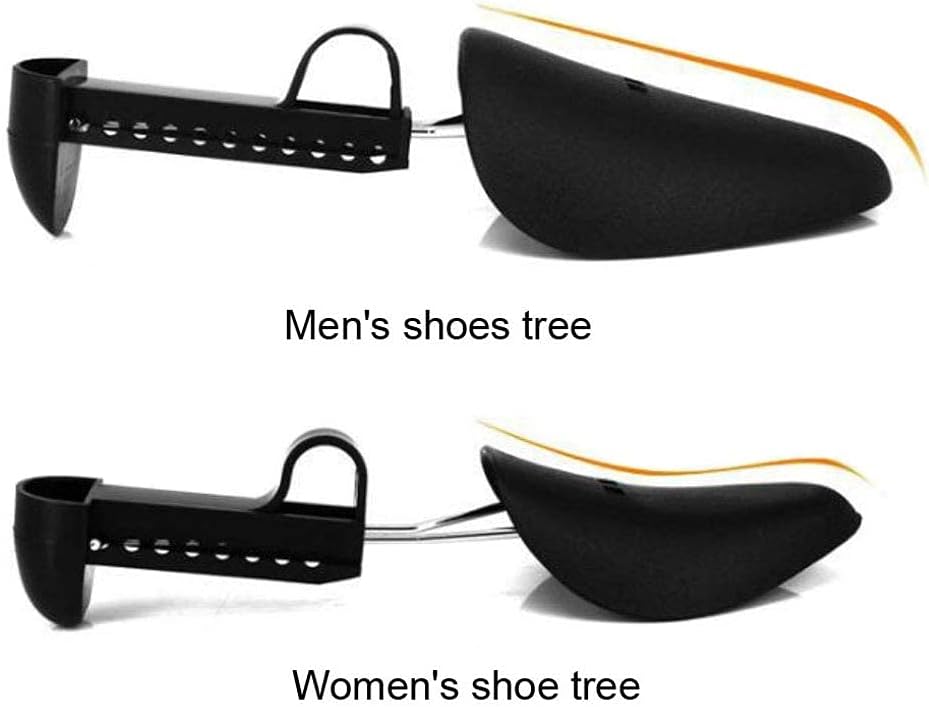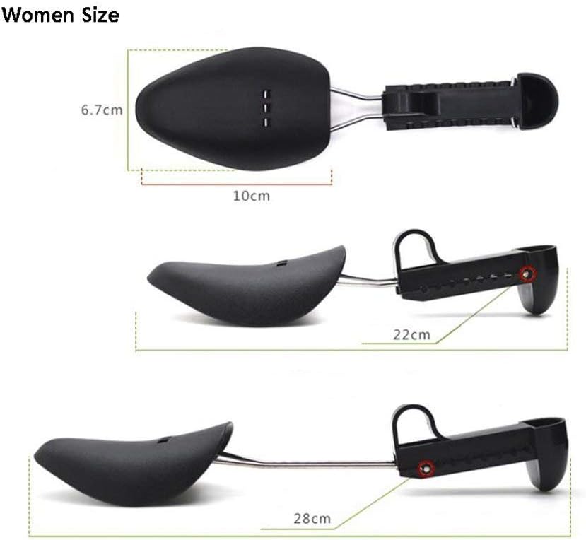 زوجان من البلاستيك بطول قابل للتعديل للنساء، حذاء شجرة الحذاء، حامل الحذاء، منظم الحذاء، حامل الحذاء، دعم عملي محمول للسفر، حذاء رياضي مع ملف زنبركي للتوتر (أسود)