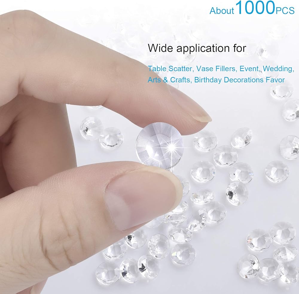 🎁تتضمن العبوة: 1000 قطعة من أحجار الكريستال الأكريليك الشفافة مقاس 10 مم، والتي يمكن استخدامها لملء مزهرية أو نثر القليل منها حول بعض الشموع.