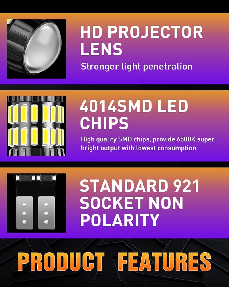 ✔【طاقة فائقة السطوع ومنخفضة】(مجموعة من مصباحين، 6500 كلفن، أبيض زينون) 921&3030 4014 34-EX شرائح LED، 1000 لومن و7.0 وات لكل لمبة، أكثر سطوعًا بكثير من اللمبة الأصلية.