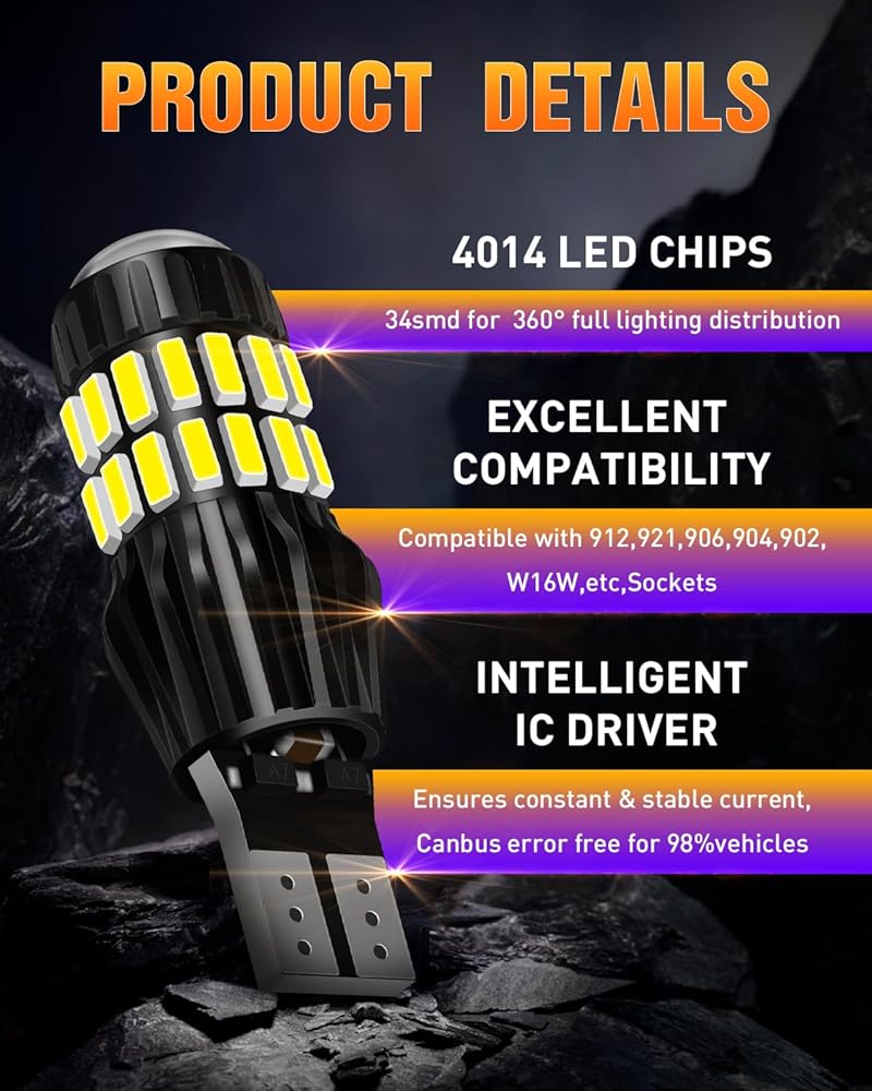 ✔【الاستخدام】يستخدم فقط للإضاءة العكسية الاحتياطية، متوافق مع مقابس 912 921 906 904 902 W16W، وحدة تحكم مدمجة خالية من الأخطاء في CAN-bus، جهد العمل: تيار مستمر 9 فولت - 30 فولت، بالنسبة لمعظم المركبات، فقط قم بتوصيل وتشغيل لمبة LED البديلة.