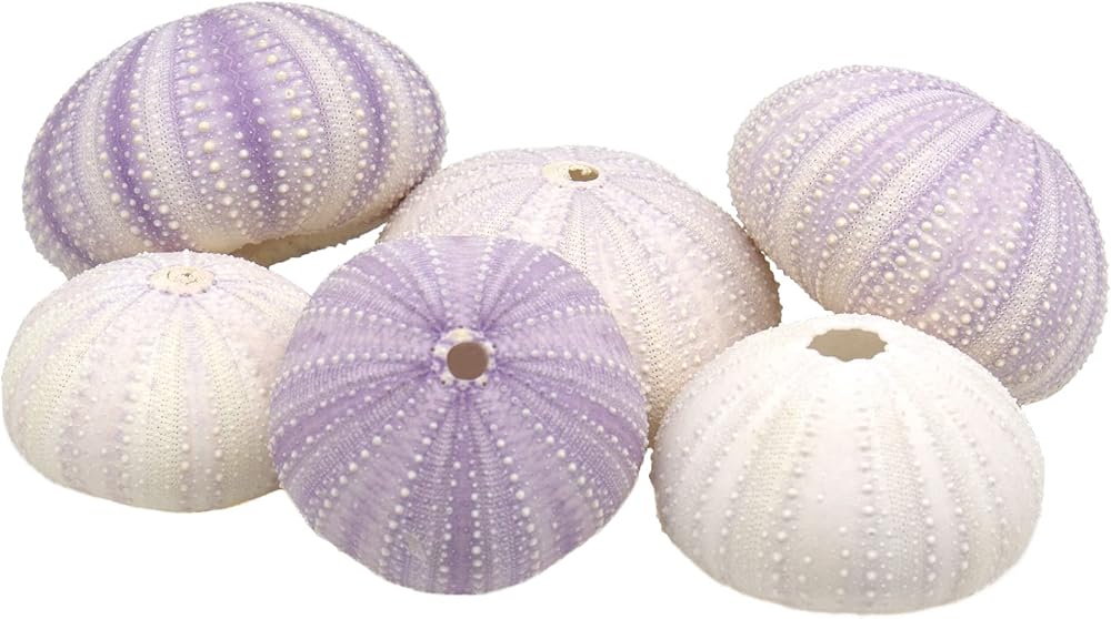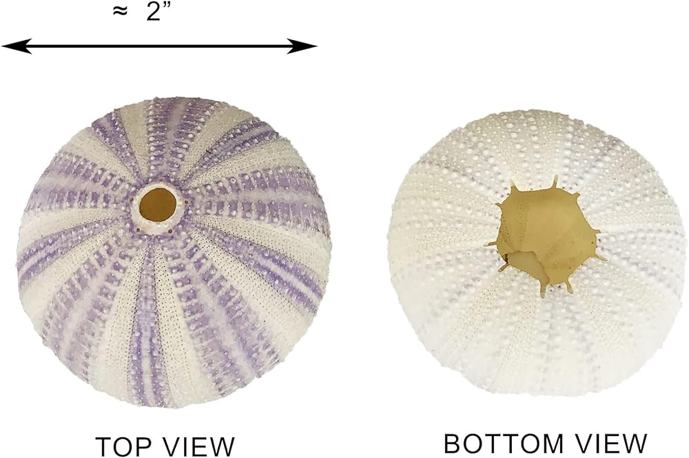 CYS EXCEL مزيج من الأصداف البحرية لقنفذ البحر باللون الأرجواني والأبيض (حوالي 2 بوصة) (6 قطع) | خيارات متعددة الألوان لنباتات قنديل البحر الهوائية والديكور البحري | حرف الشاطئ الساحلية وزخارف البحر