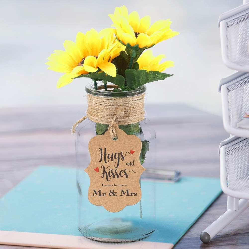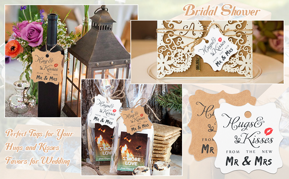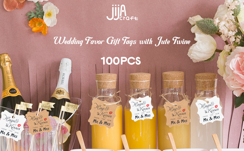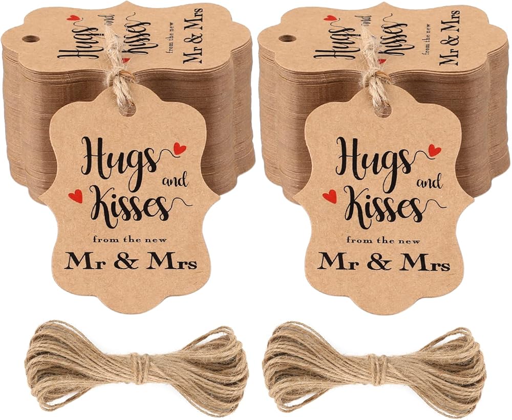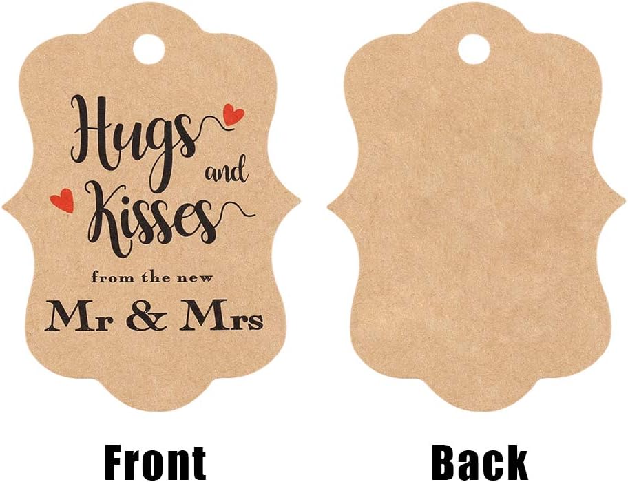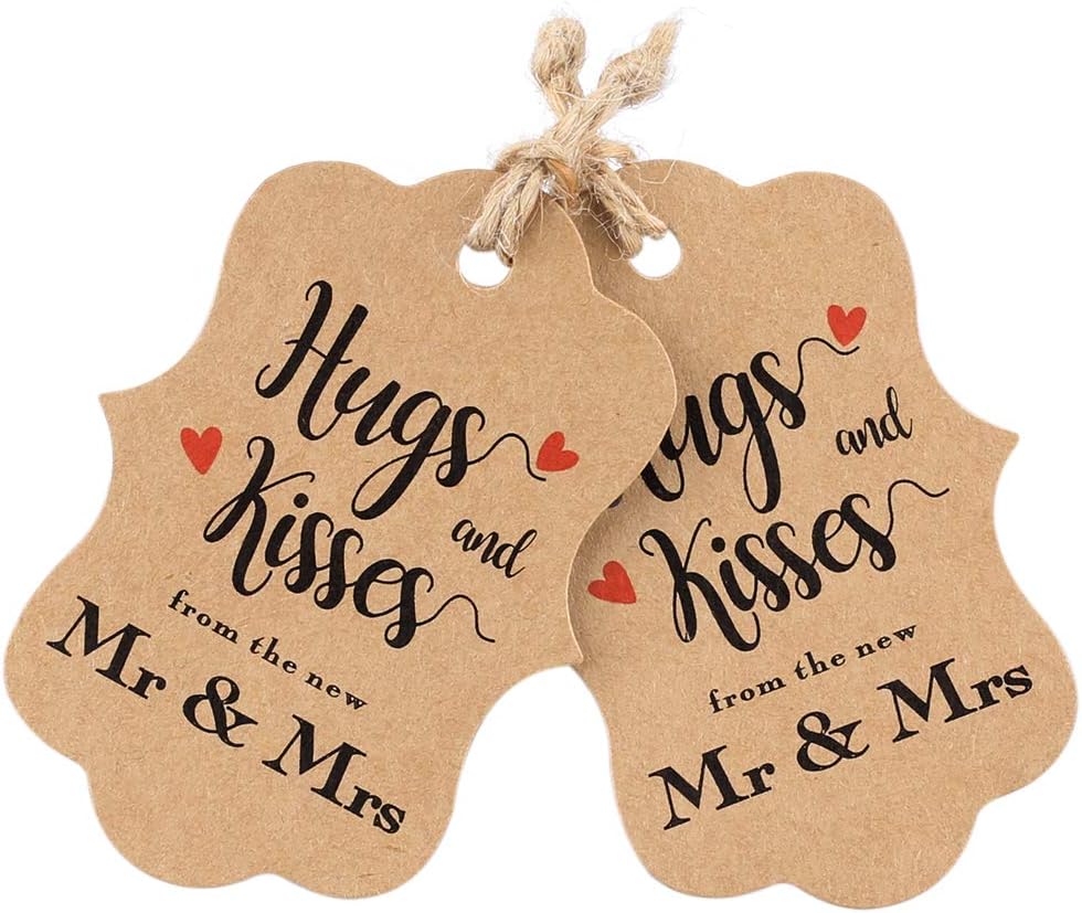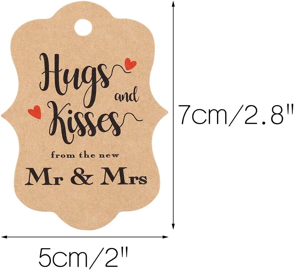 100 قطعة من بطاقات هدايا الزفاف من jijAcraft، بطاقات هدايا من ورق الكرافت مع سلسلة، عناق وقبلات بنية مخصصة من علامات تغليف هدايا السيد والسيدة الجديدة لحفلات الزفاف، وحفلات الزفاف، والذكرى السنوية