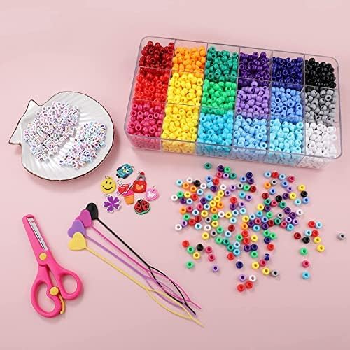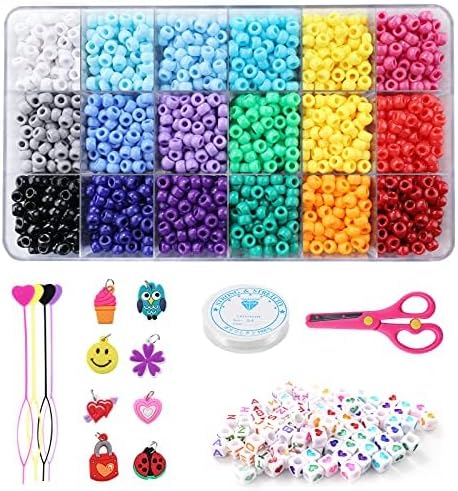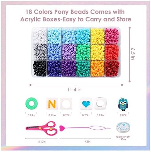 مجموعة خرز المهر الملون: أكثر من 2800 خرزة حصان، حقيبة من خرز الحروف الملونة، حقيبة من خرز الحب الملون، 1 لفة من خيط مرن 0.4 مم، 1 مقص، 8 قطع مجوهرات بلاستيكية، 4 قطع أداة خرز الشعر.