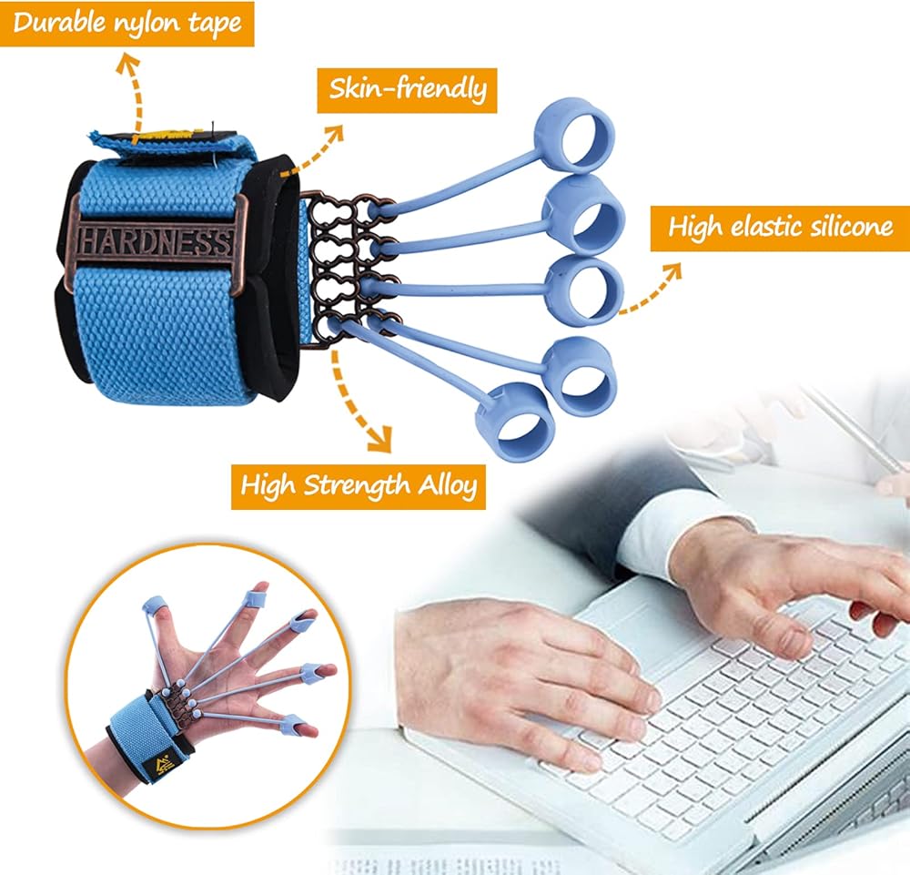 【تمرين يدوي مريح】: مقوي الإصبع مصنوع من السيليكون المرن المثالي، ويمكن لأي شخص ارتداء أداة تعديل الفيلكرو دون الحاجة إلى النظر في محيط المعصم.