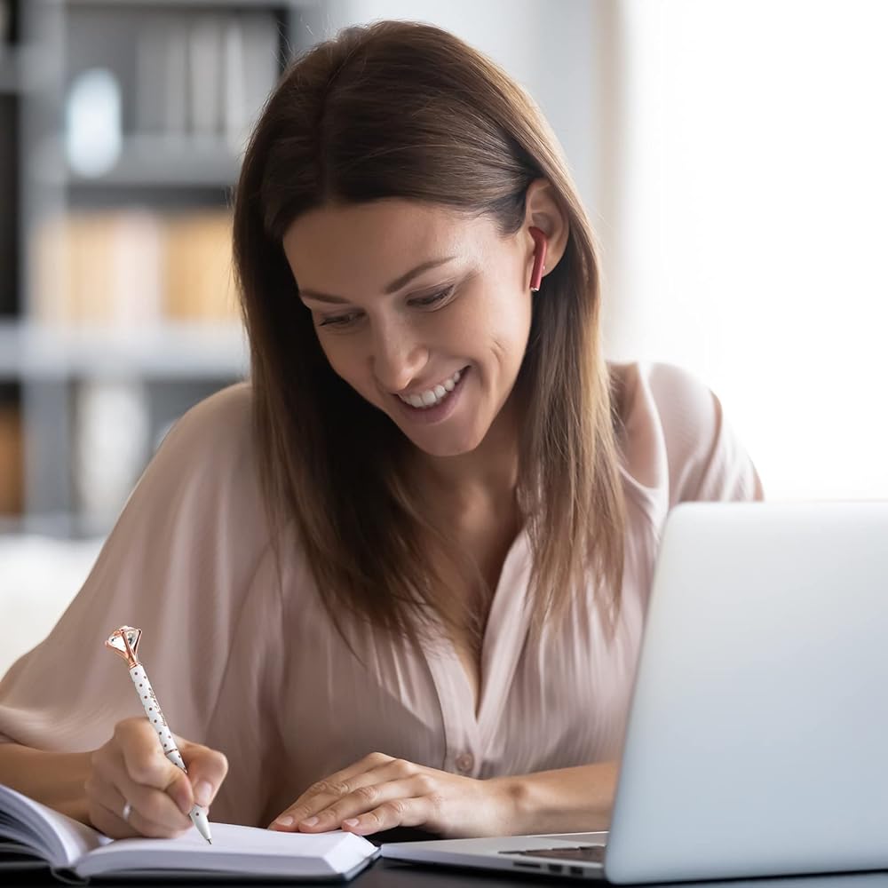 تصميم أنيق: يبلغ طول القلم الماسي للنساء حوالي 14 سم/ 5.5 بوصة، والجزء العلوي من كل قلم مزين بماسة كريستالية كبيرة، والتي ستتألق في الضوء، مما يجعل قلمك يبدو أكثر روعة وبريقًا
