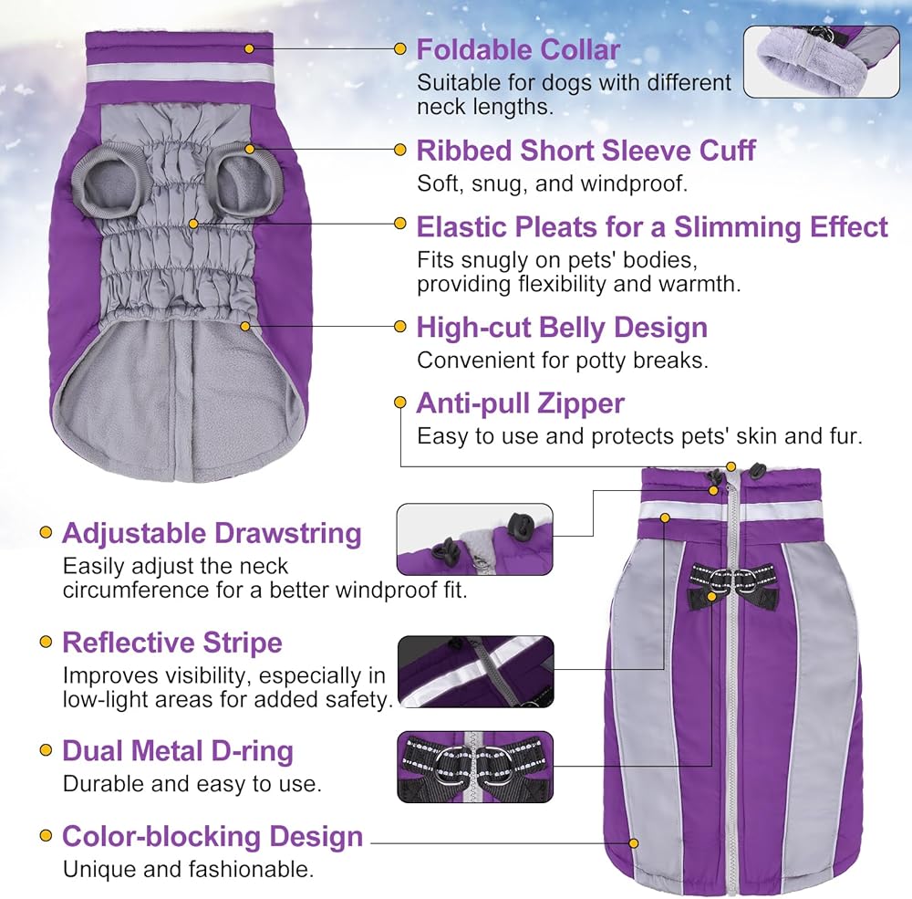 • متعدد الاستخدامات لمختلف المناسبات: هذا المعطف الشتوي ذو الرقبة العالية المقاوم للماء مناسب للأنشطة الداخلية والخارجية. سواء كان المشي أو الجري أو التنزه سيرًا على الأقدام أو المشي اليومي للكلاب، فهو يوفر الدفء والحماية التي تحتاجها الكلاب.