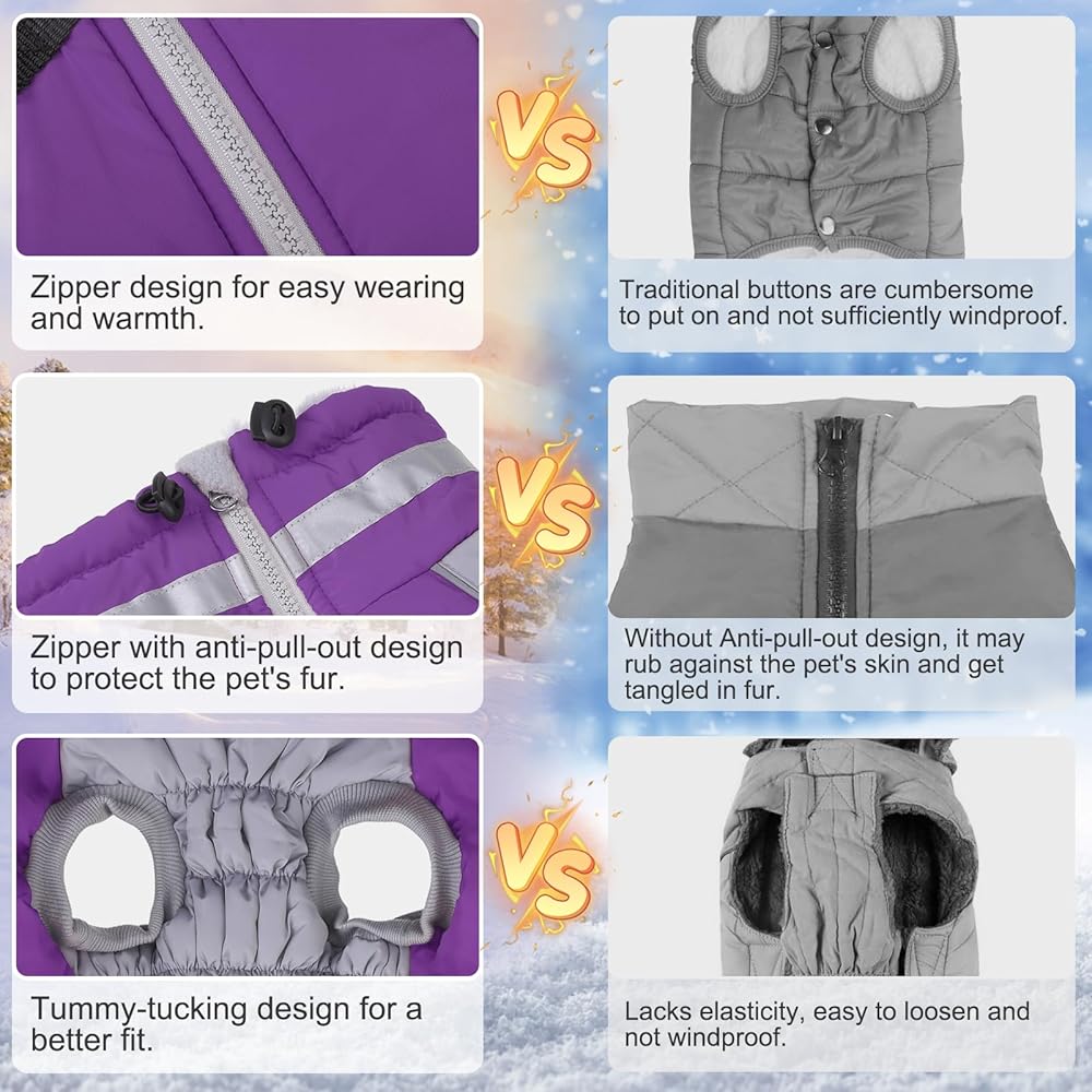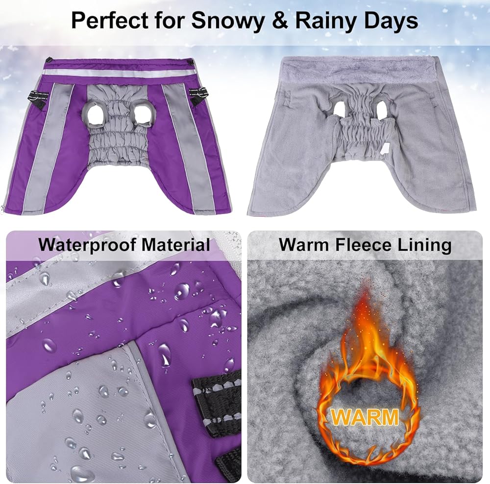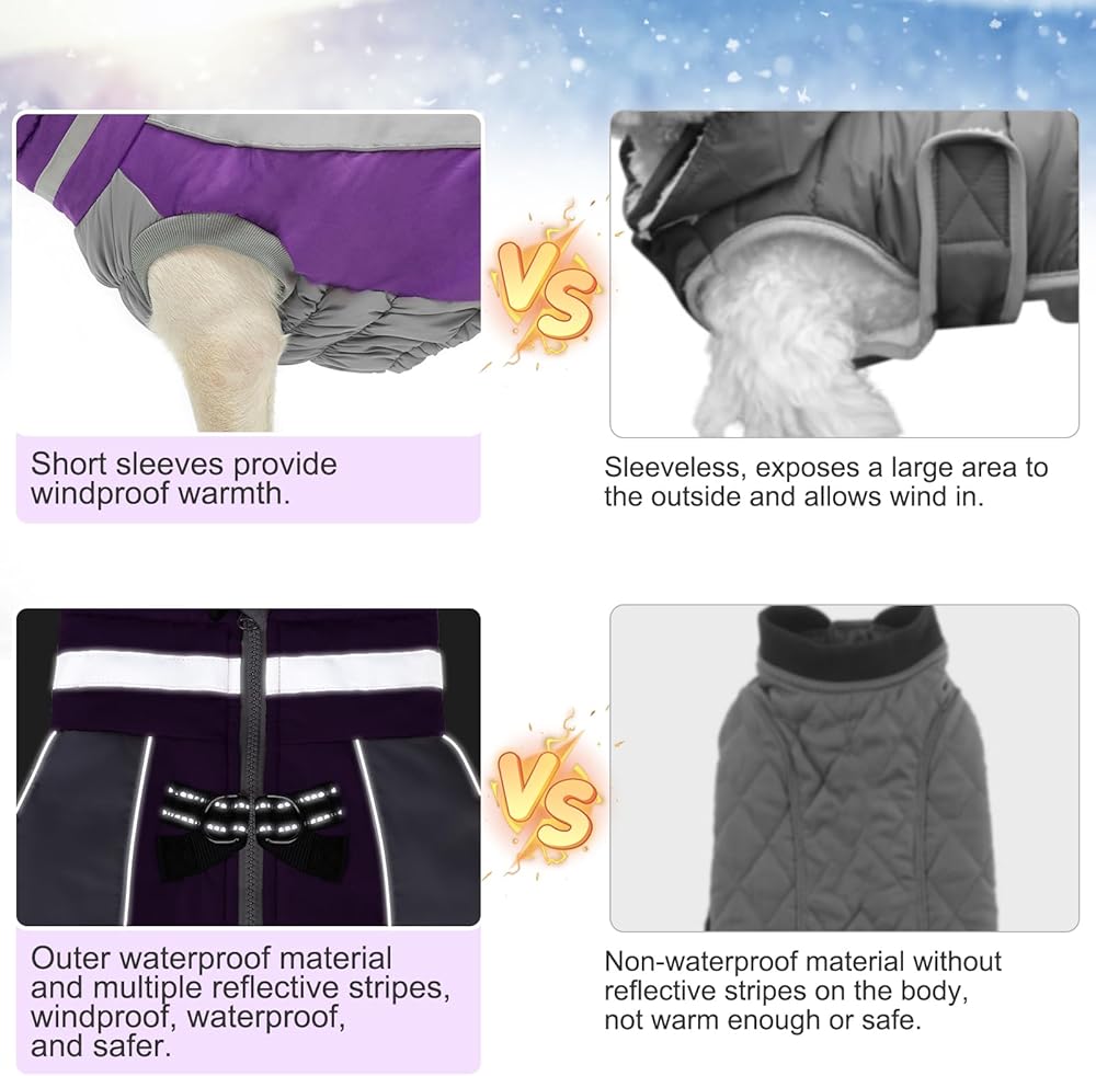 معطف الشتاء الكلب من Beautyzoo ، سترة عاكسة مع تسخير مدمج ، ملابس ملتوية من السترة المليئة بالماء للكلاب الصغيرة إلى الكبيرة ، XS