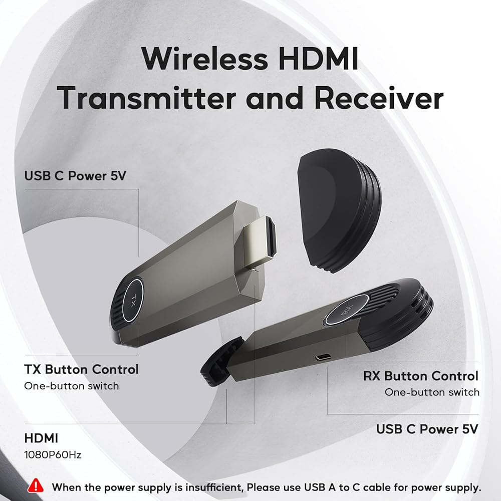 【HDMI لاسلكي】تمتع بتجربة بث سلس مع جهاز إرسال HDMI اللاسلكي الخاص بنا. قم بنسخ المحتوى من الكمبيوتر المحمول أو الهاتف الخاص بك، أو شارك البيانات الخاصة بدور السينما المنزلية والمزيد.