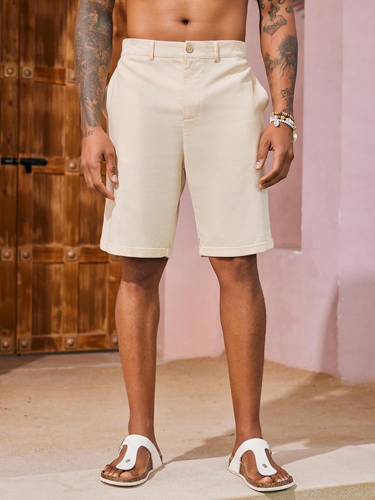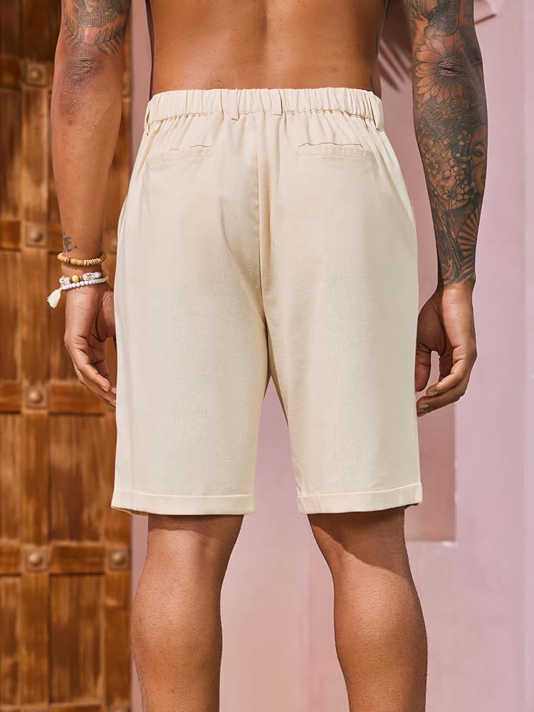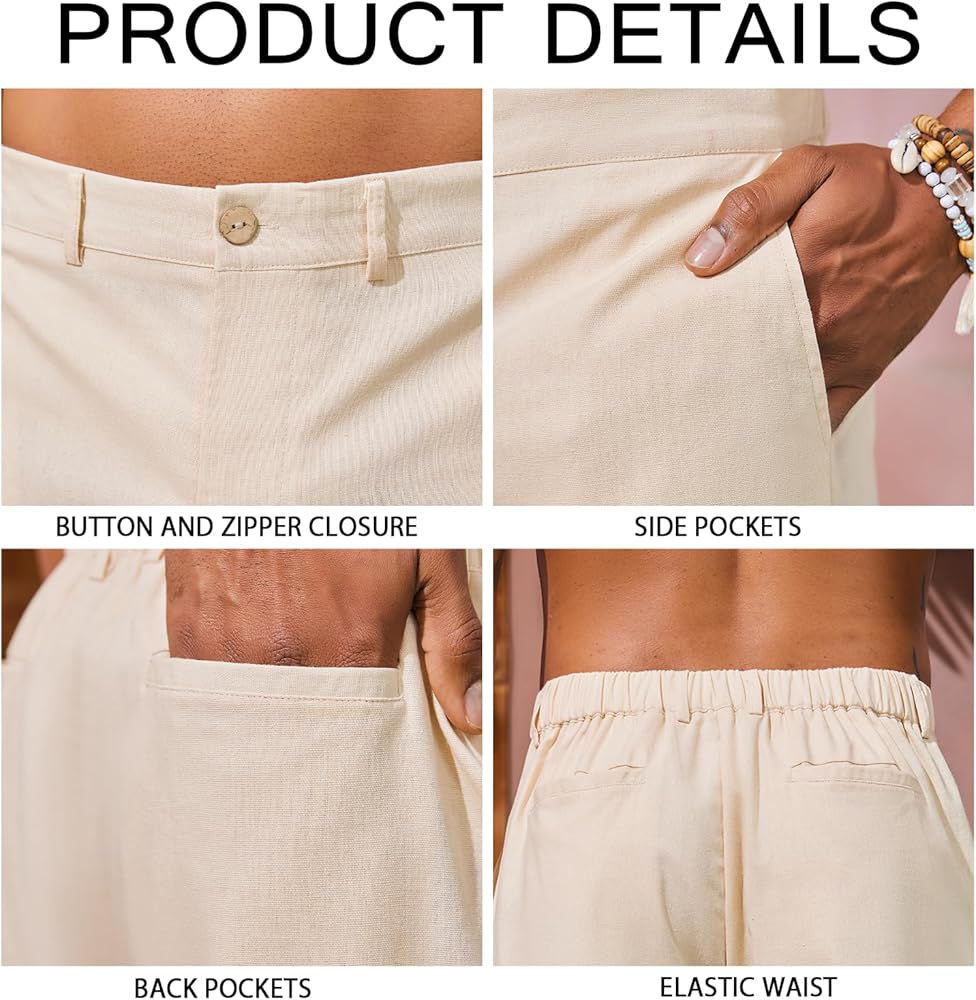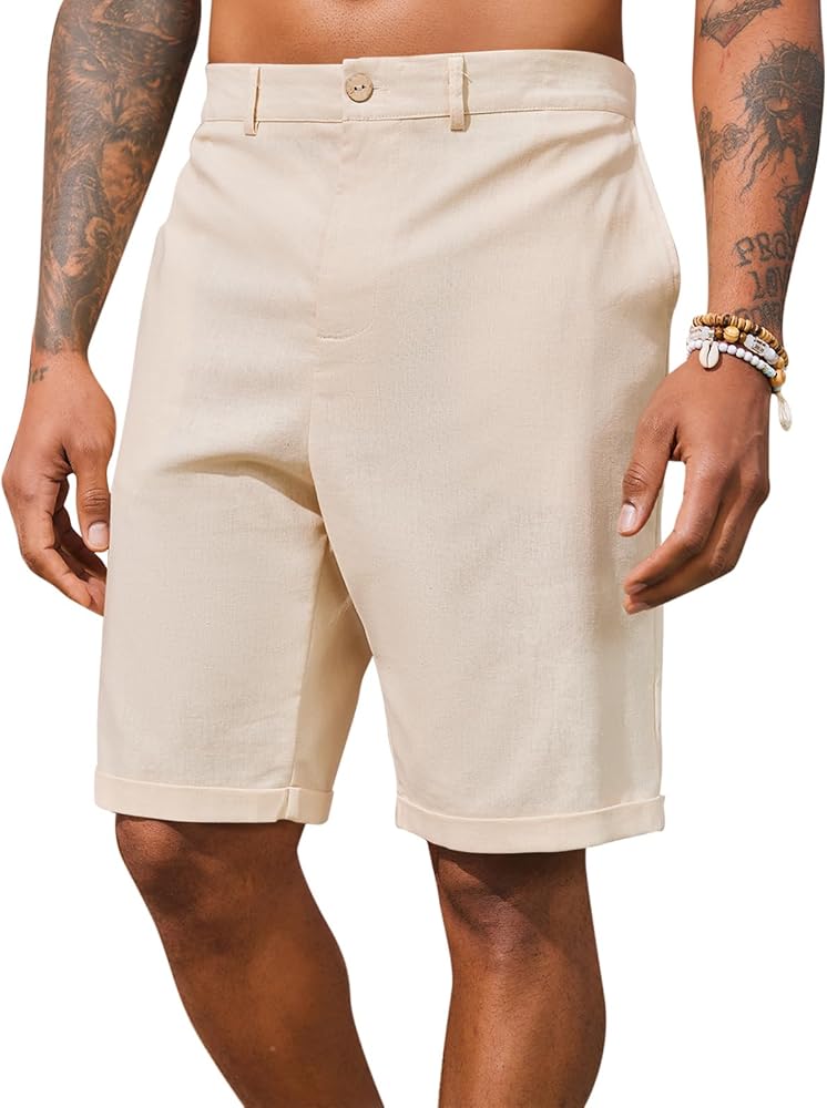 القماش: هذه السراويل القصيرة الكتانية غير الرسمية للرجال مصنوعة من نسيج الكتان عالي الجودة. مريح وناعم ومسامي وصديق للبشرة ومرونة، مما يسمح لك بالتحرك بسهولة طوال اليوم.