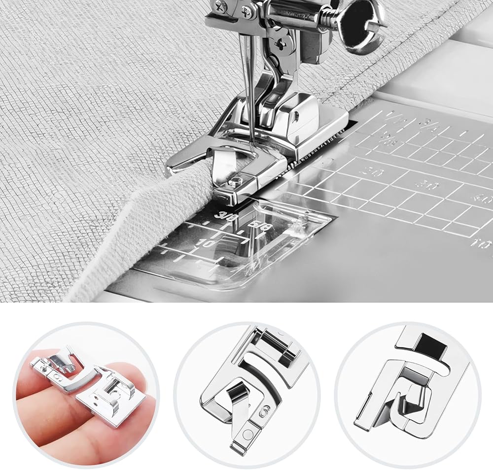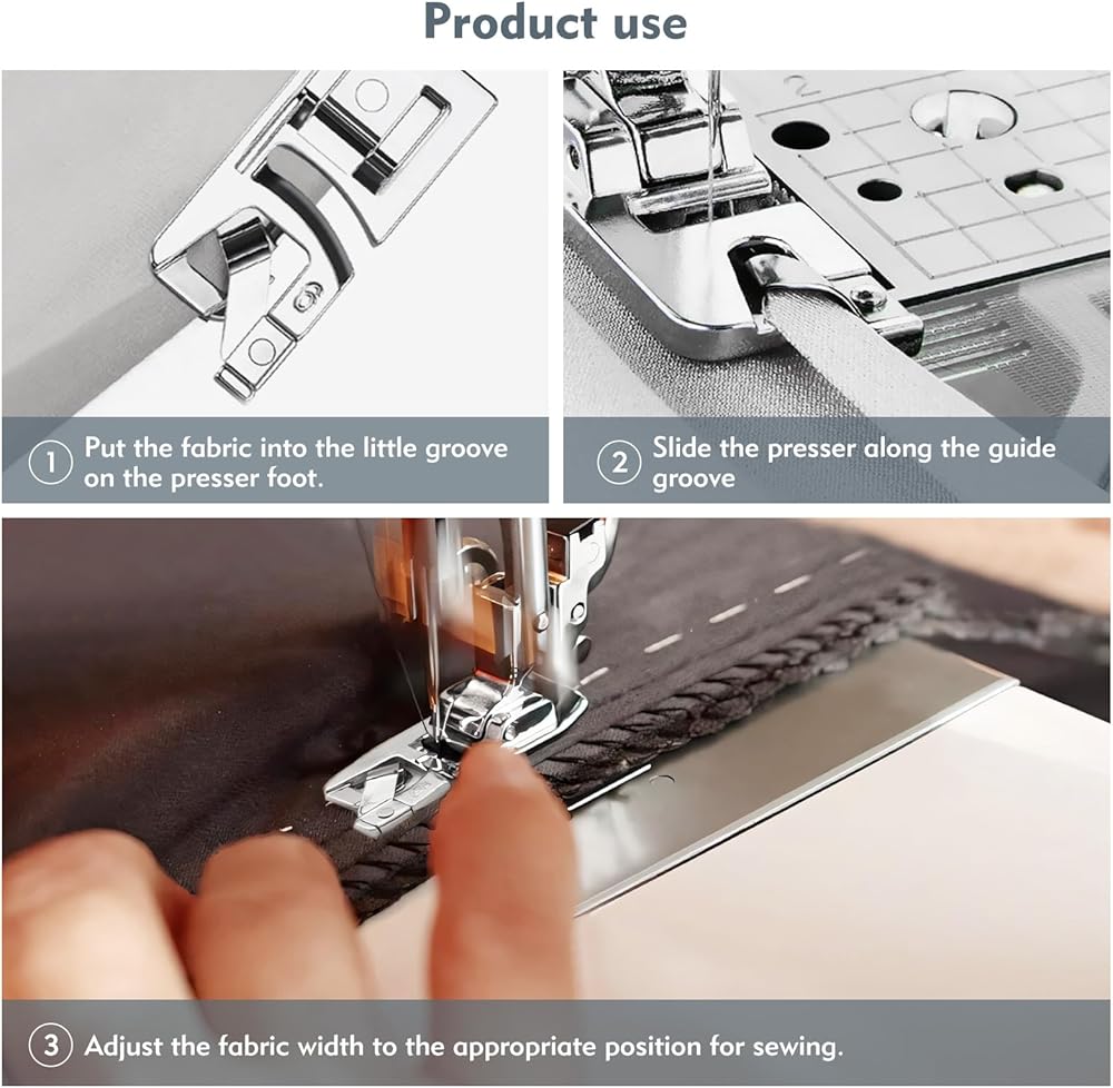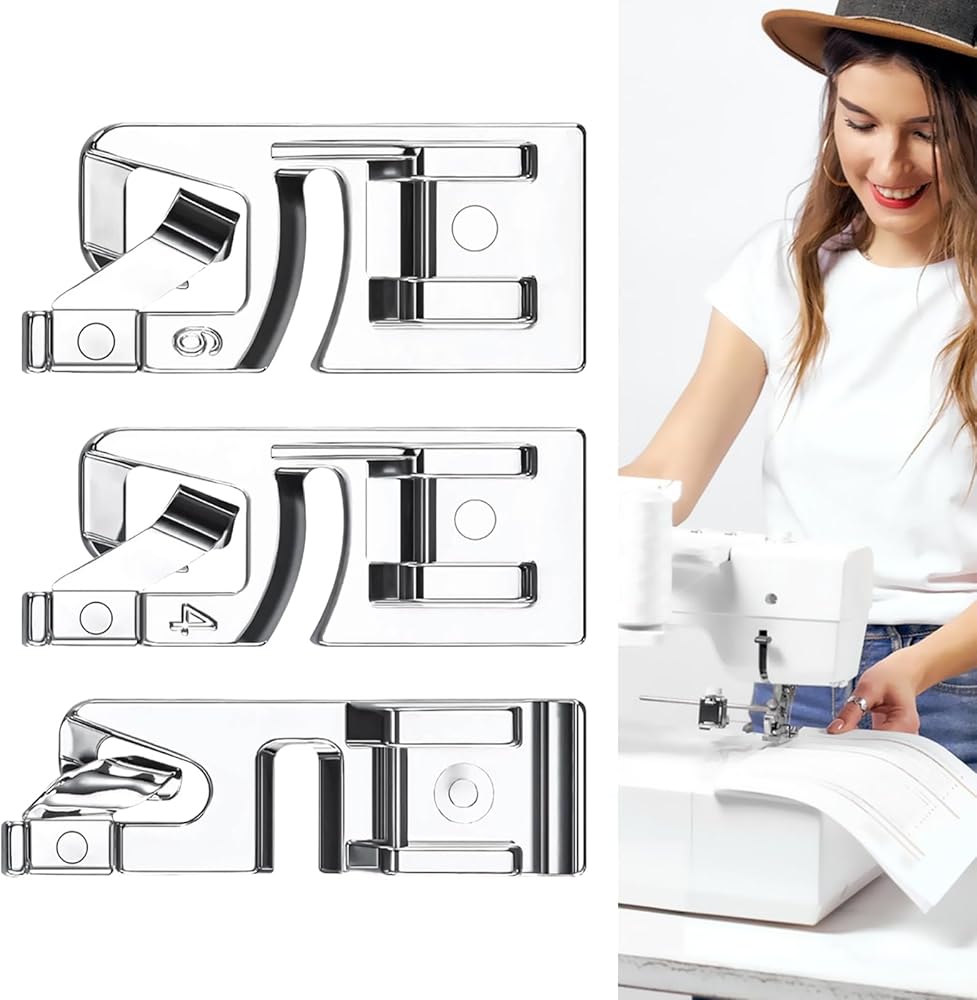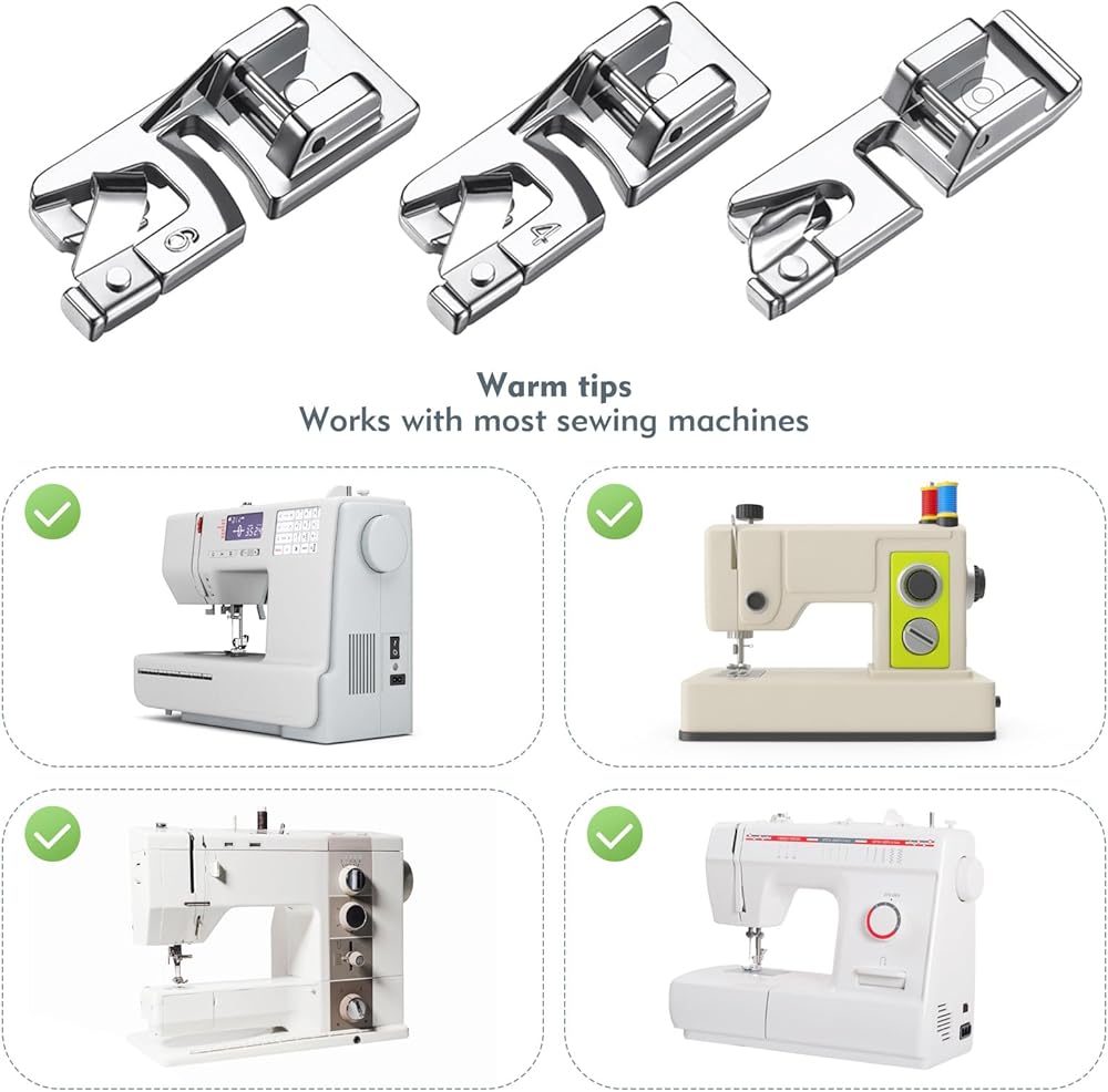 [تتكون من أحجام مختلفة]: تشتمل مجموعة أدوات الخياطة ذات الحاشية الضيقة هذه على ثلاثة أحجام مختلفة وهي مصممة خصيصًا لإنشاء حواف ملفوفة رائعة على الأقمشة الرقيقة. من الضروري التأكد من تثبيت القدم الضاغطة بشكل آمن وثباتها قبل إجراء أي تعديلات للاستخدام الأمثل.